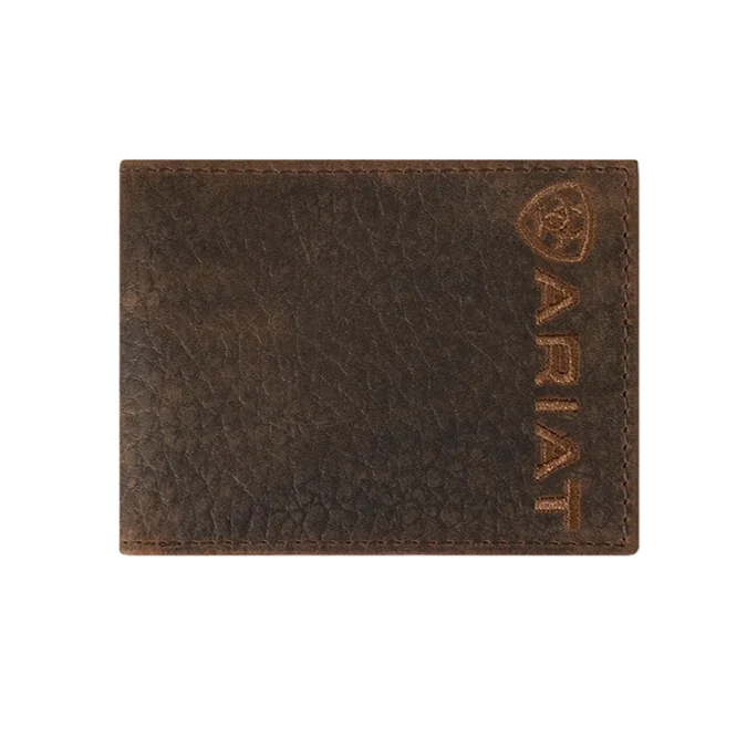 Portefeuille Ariat Bullhide Brown Embroidered Bifold Wallet A3554502 Portefeuille à deux volets marron. Cuir de taureau. Coupe ajustée. Logo Ariat brodé. Plusieurs emplacements pour cartes.