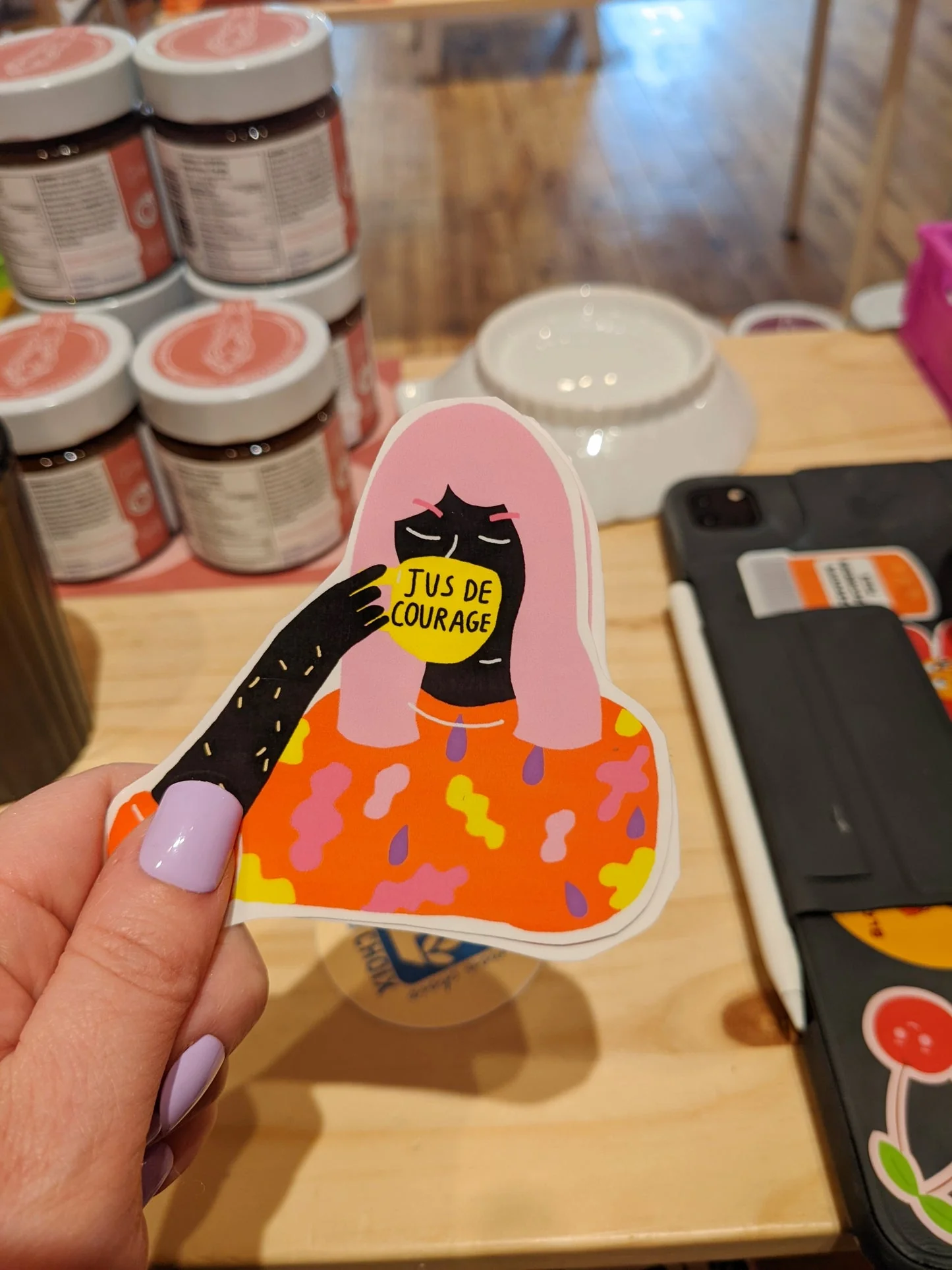 Création locale, faite avec amour et talent à Montréal. Stickers à l’épreuve de l’eau, du lave-vaisselle, et de tout ce qui pourrait scrapper un autocollant ordinaire (celui-ci ne l’est pas, évidemment) 2 » x 3  »Vinyle mat résistant