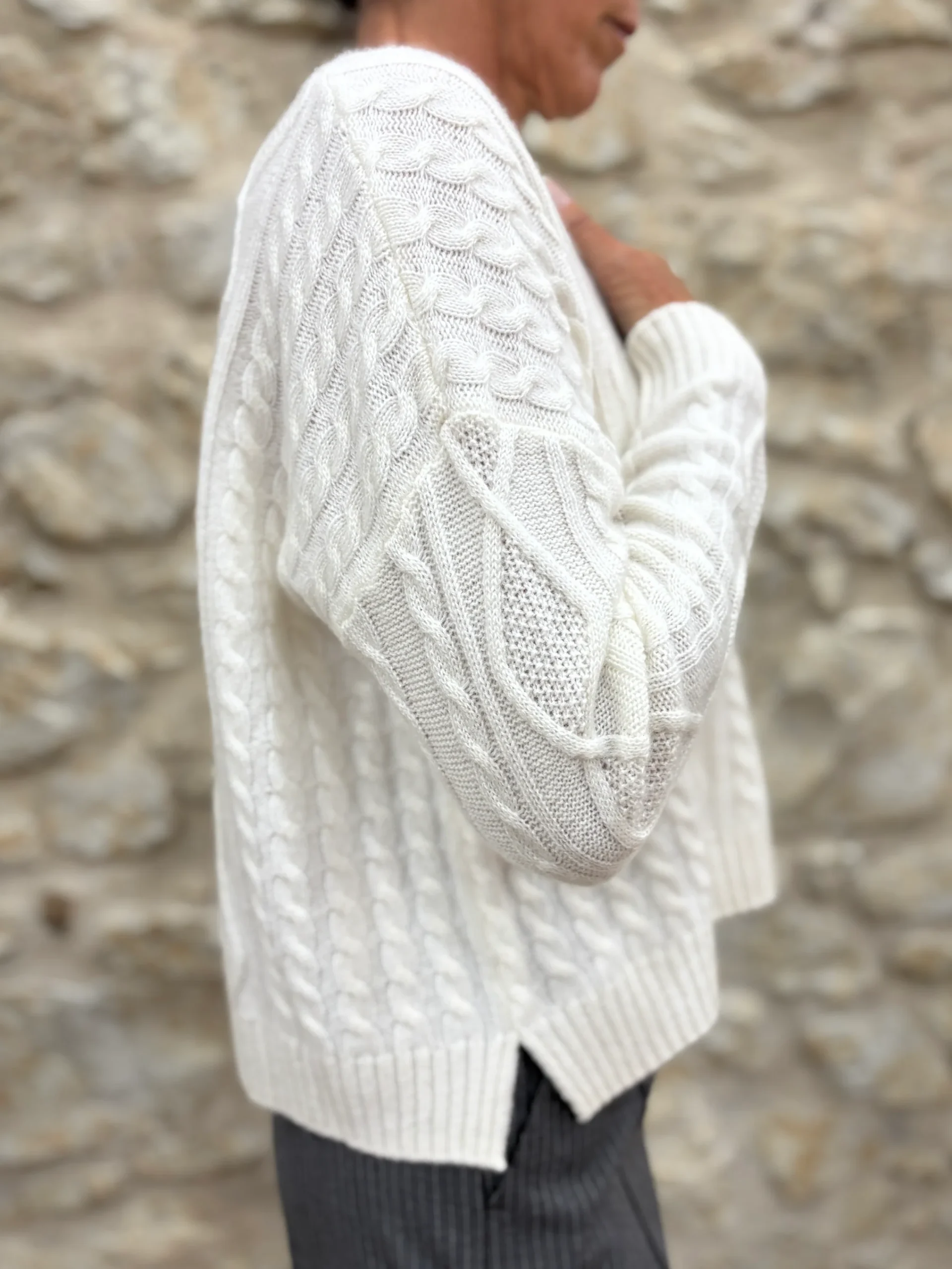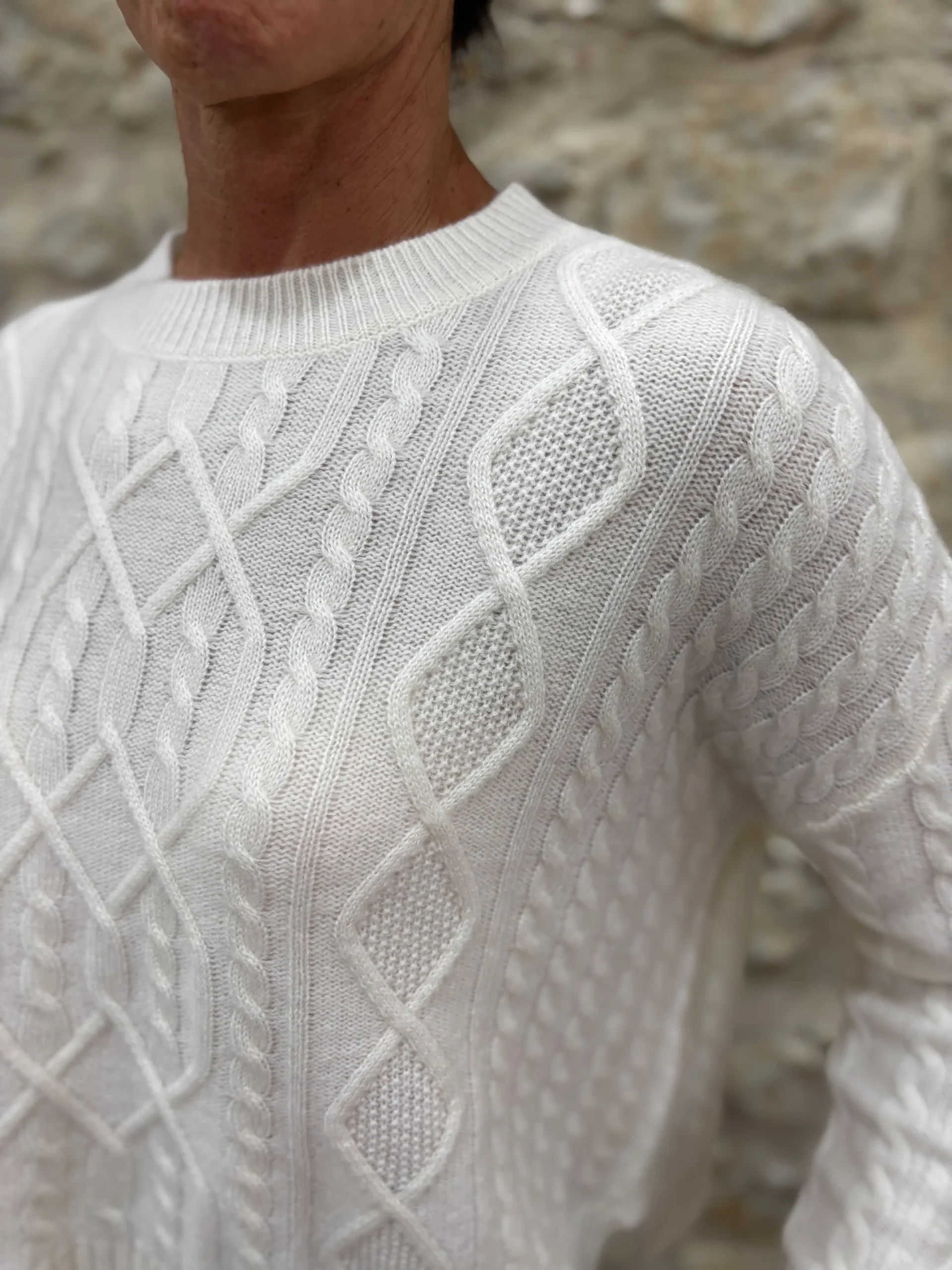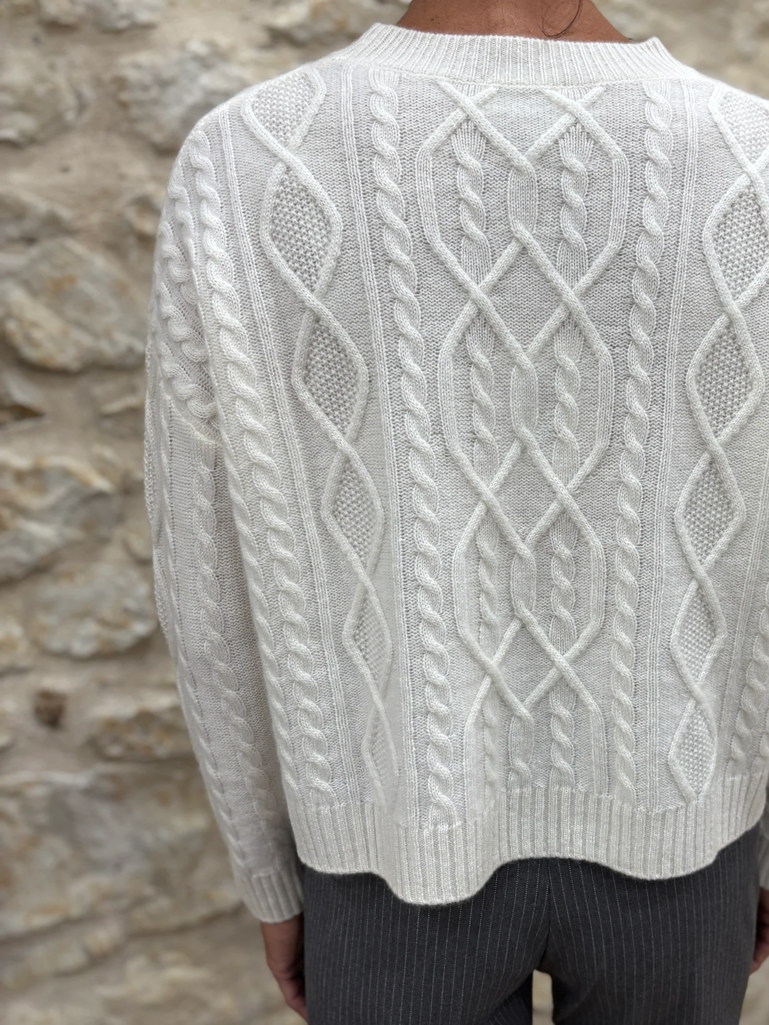 Matières : Cachemire Coupe : Coupe droite et courteForme du col : Col rond côteléLongueur des manches : Manches longuesCouleurs / Motifs : Écru Notre modèle porte une taille S et mesure 165 cm. Marque : SOLOCASCMIR Conseils d’entretien : Lavage à la main à froid.Informations supplémentaires : Prenez votre taille habituelle.