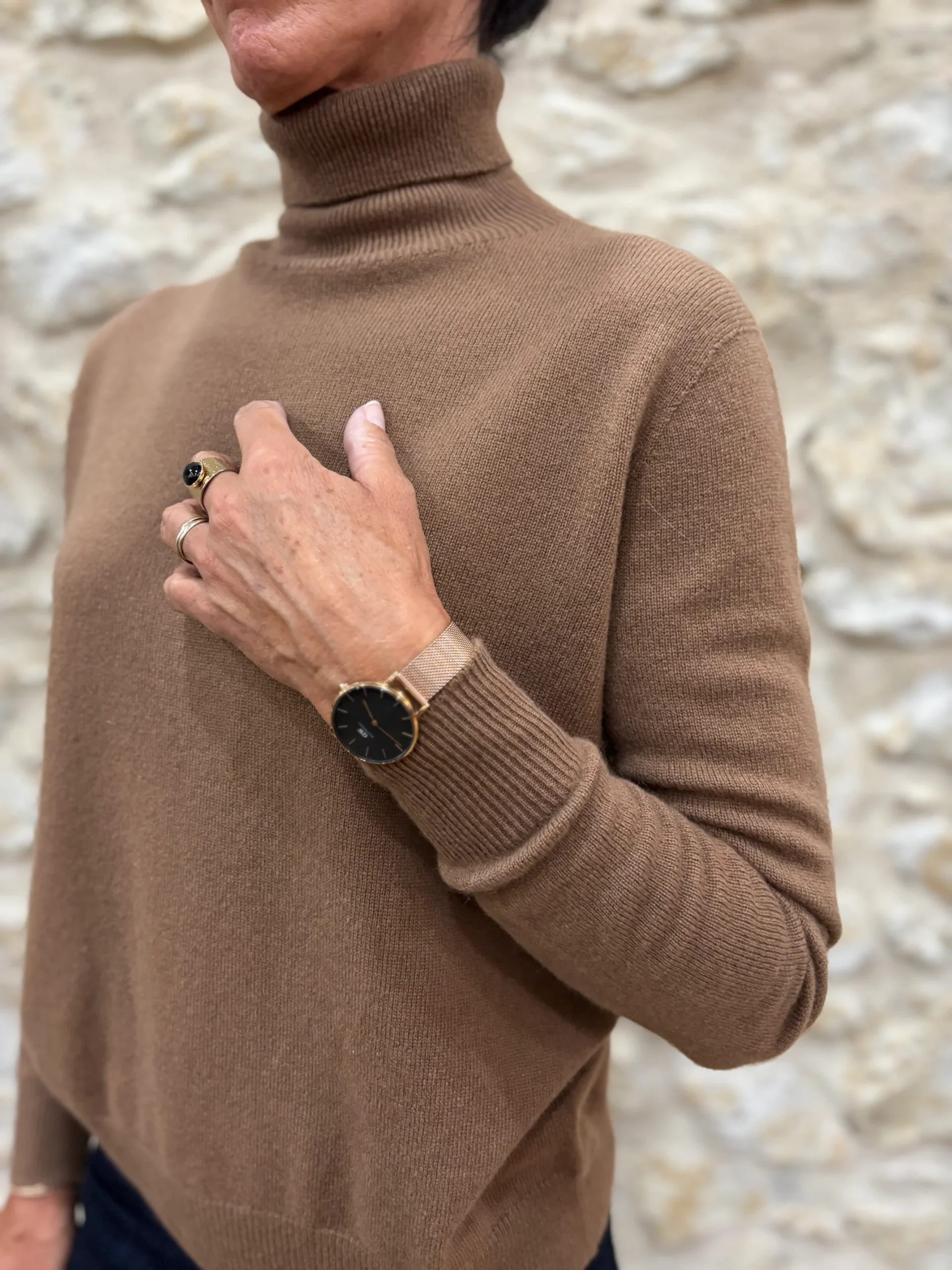 Matières : Cachemire Coupe : Coupe droite, resserré à la taille.Forme du col : Col rouléLongueur des manches : Manches longuesCouleurs / Motifs : Marron (coffee) Notre modèle porte une taille M et mesure 165 cm. Marque : SOLOCASCMIR Conseils d’entretien : Lavage à la main, à froid.Informations supplémentaires : Prenez votre taille habituelle.