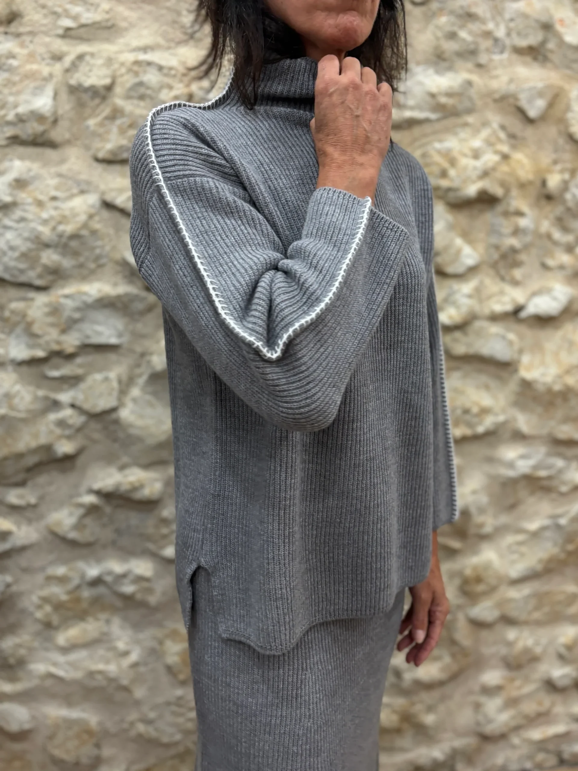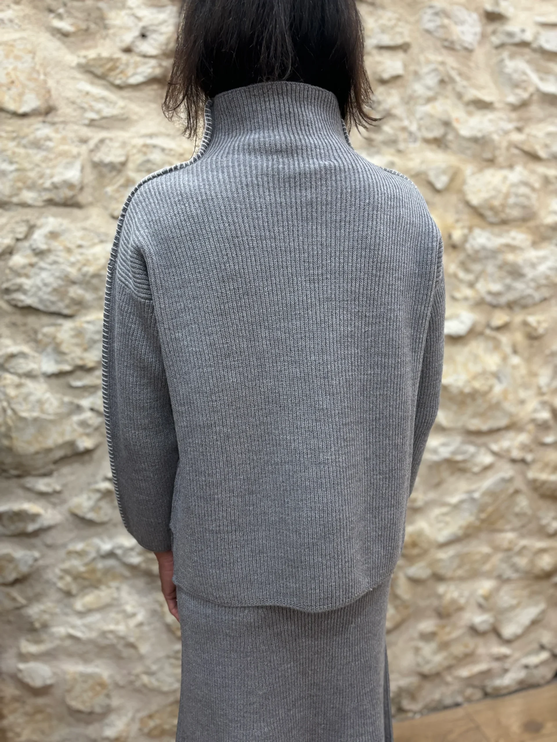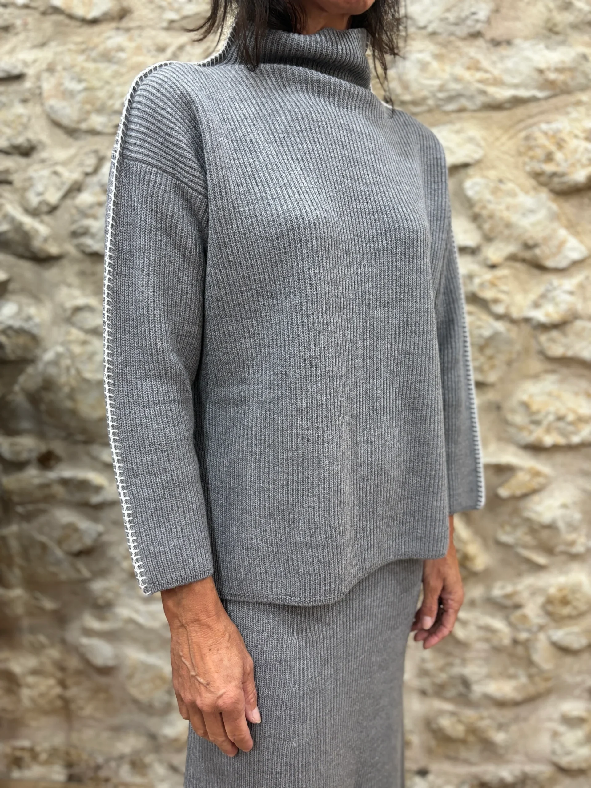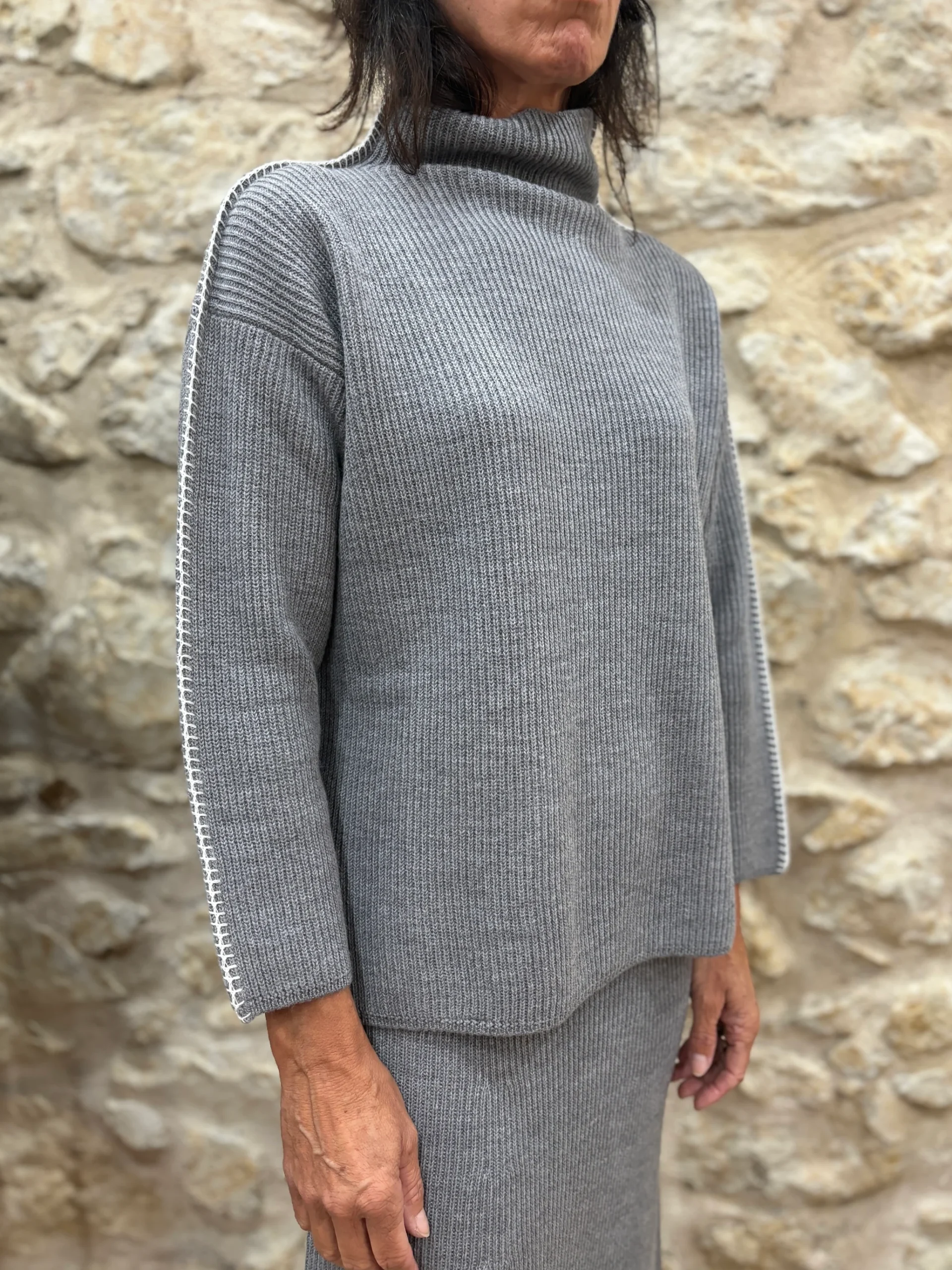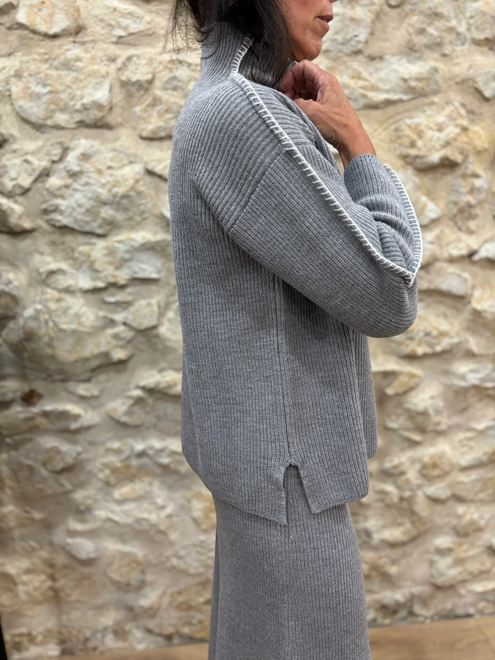 Couleurs / Motifs : Gris avec finitions côtes anglaises.