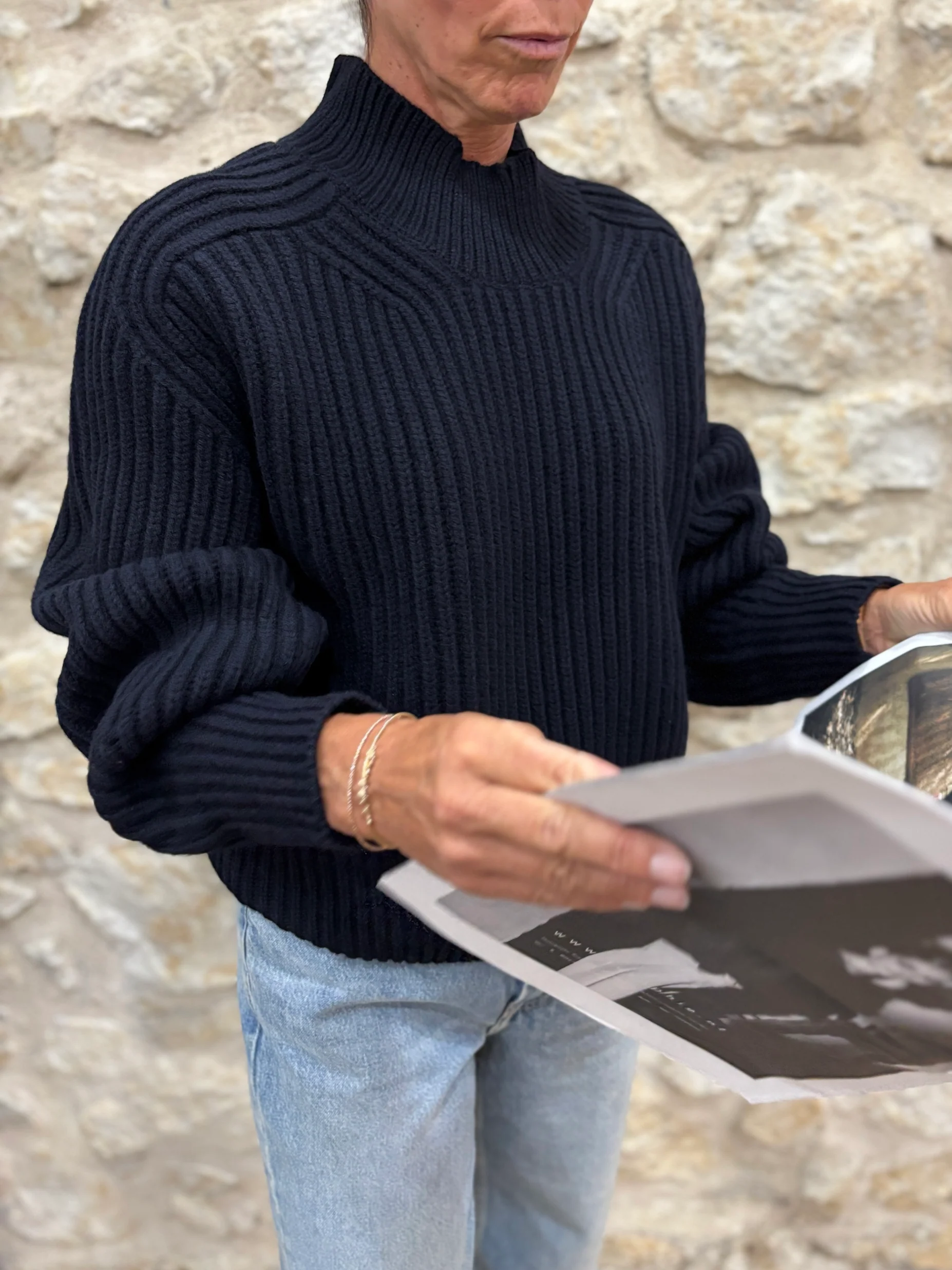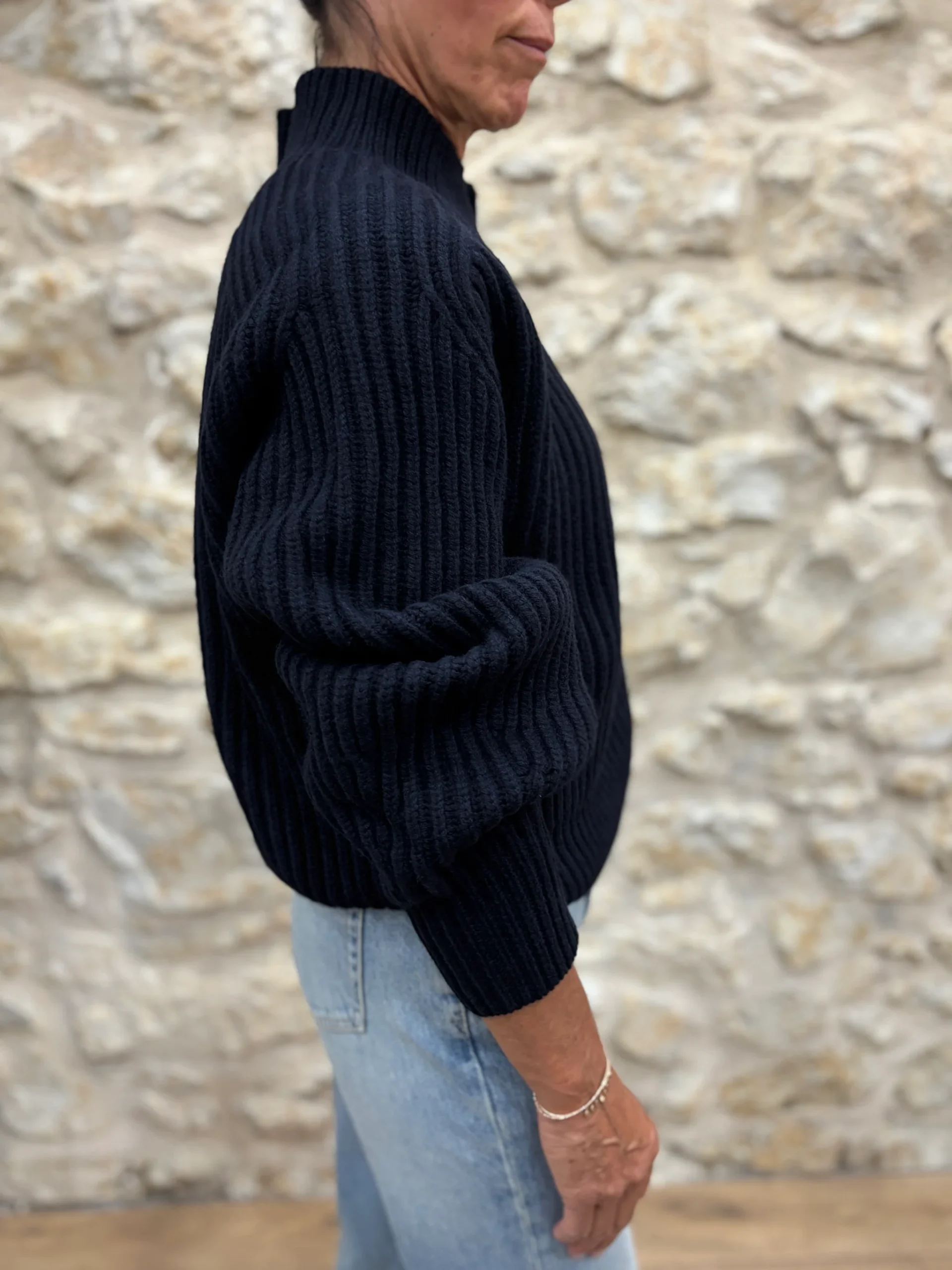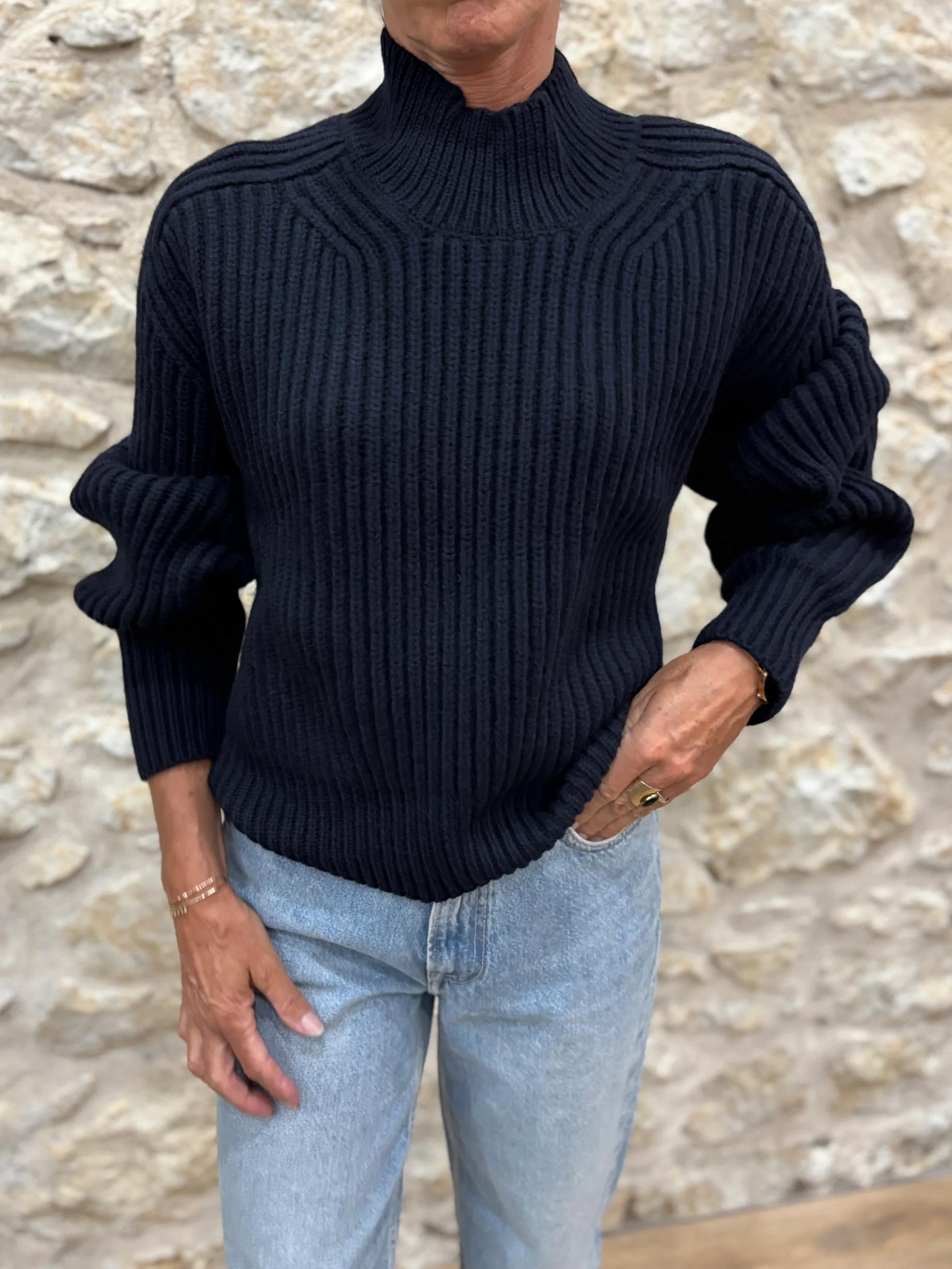 Matières : 100% Laine mérinos Coupe : Coupe oversizeForme du col : Col rond, finition bord côtes.Longueur des manches : Manches longuesCouleurs / Motifs : Bleue marine Notre modèle porte une taille 0 et mesure cm. Nom du modèle : FLAMANDMarque : SOEUR PARIS Conseils d’entretien : Lavage en la main à froid.Informations supplémentaires : […]