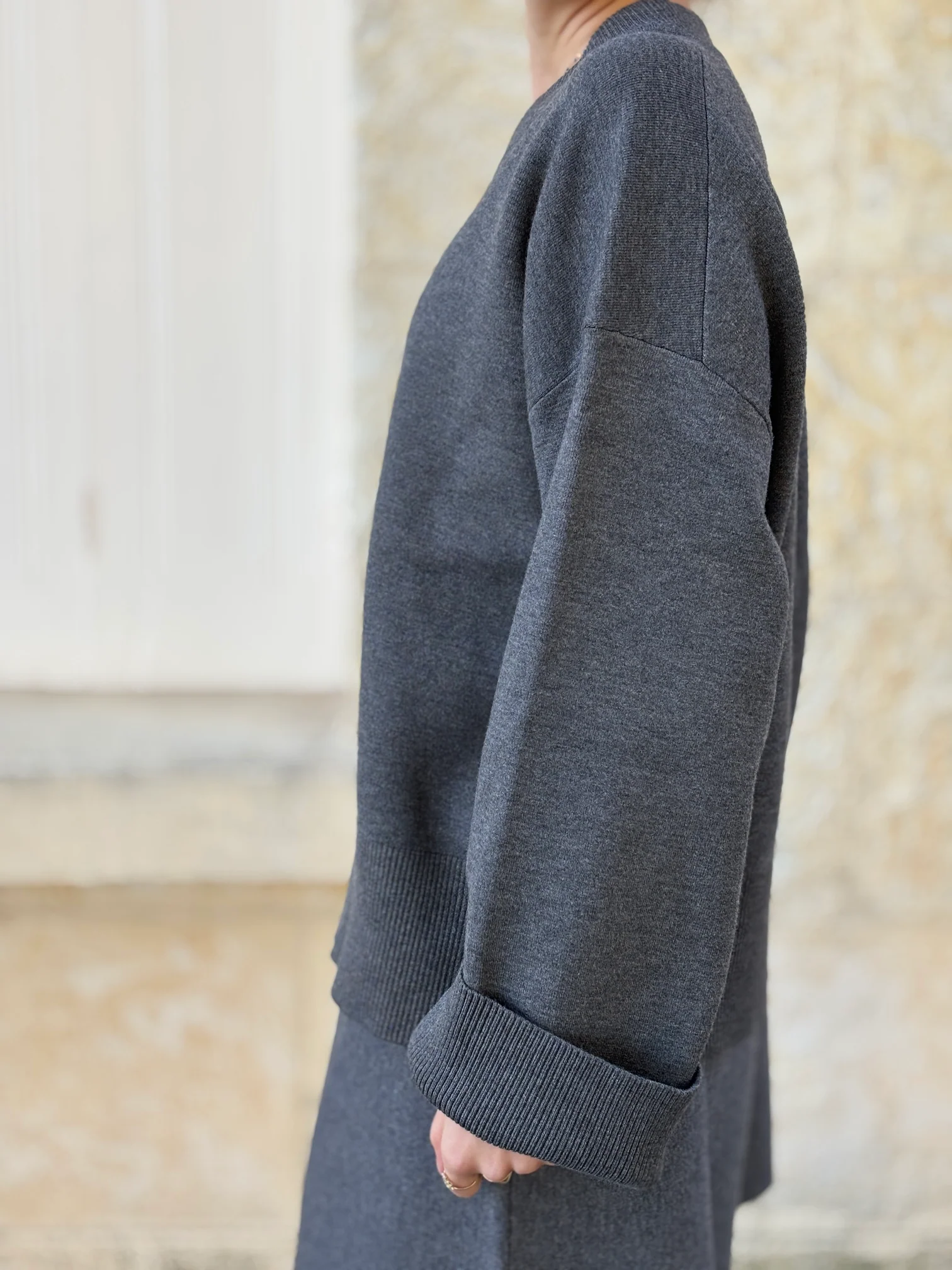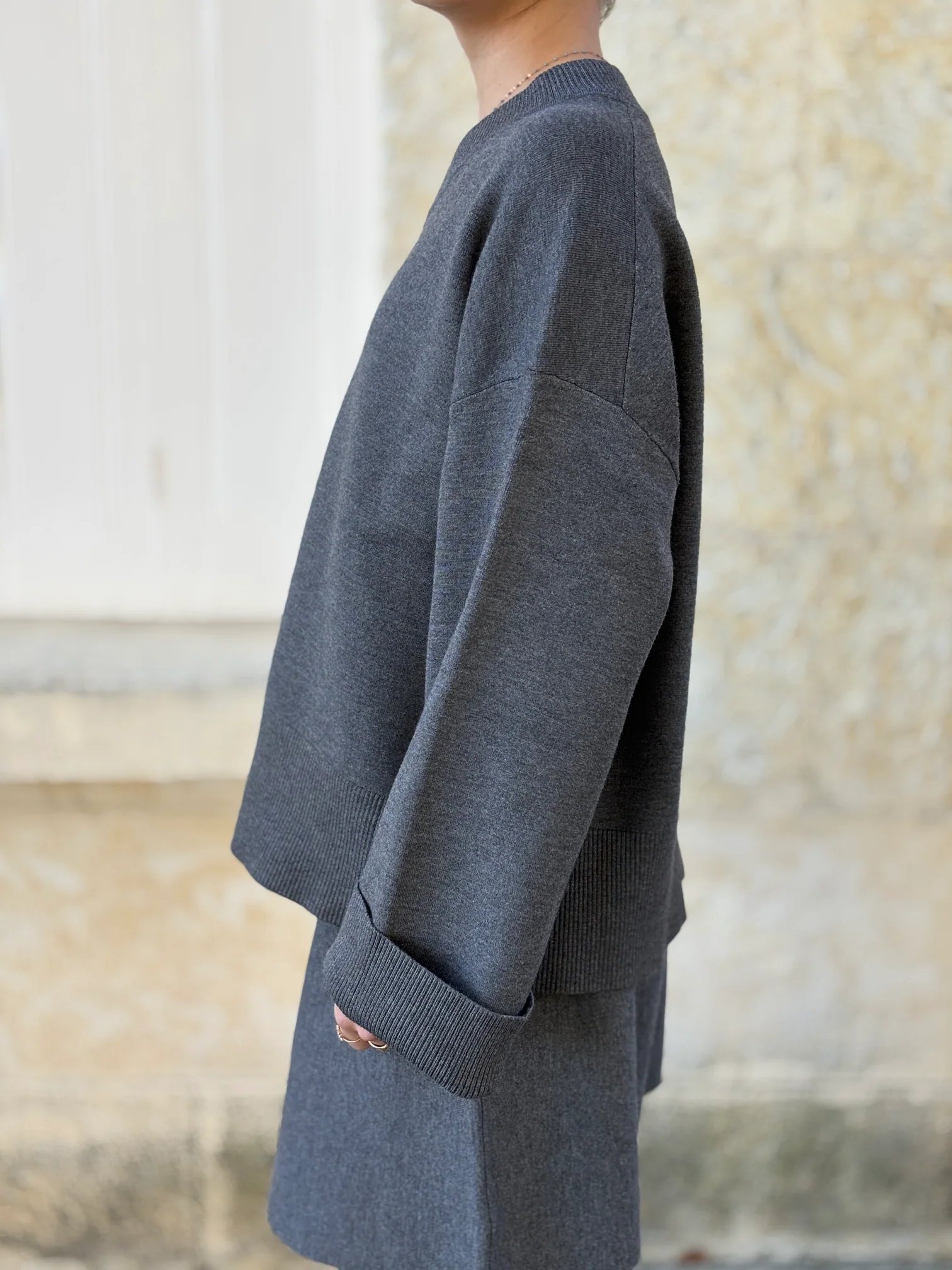 Coupe : Coupe oversize avec les épaules basses. Col, poignets & ourlet côtelés.