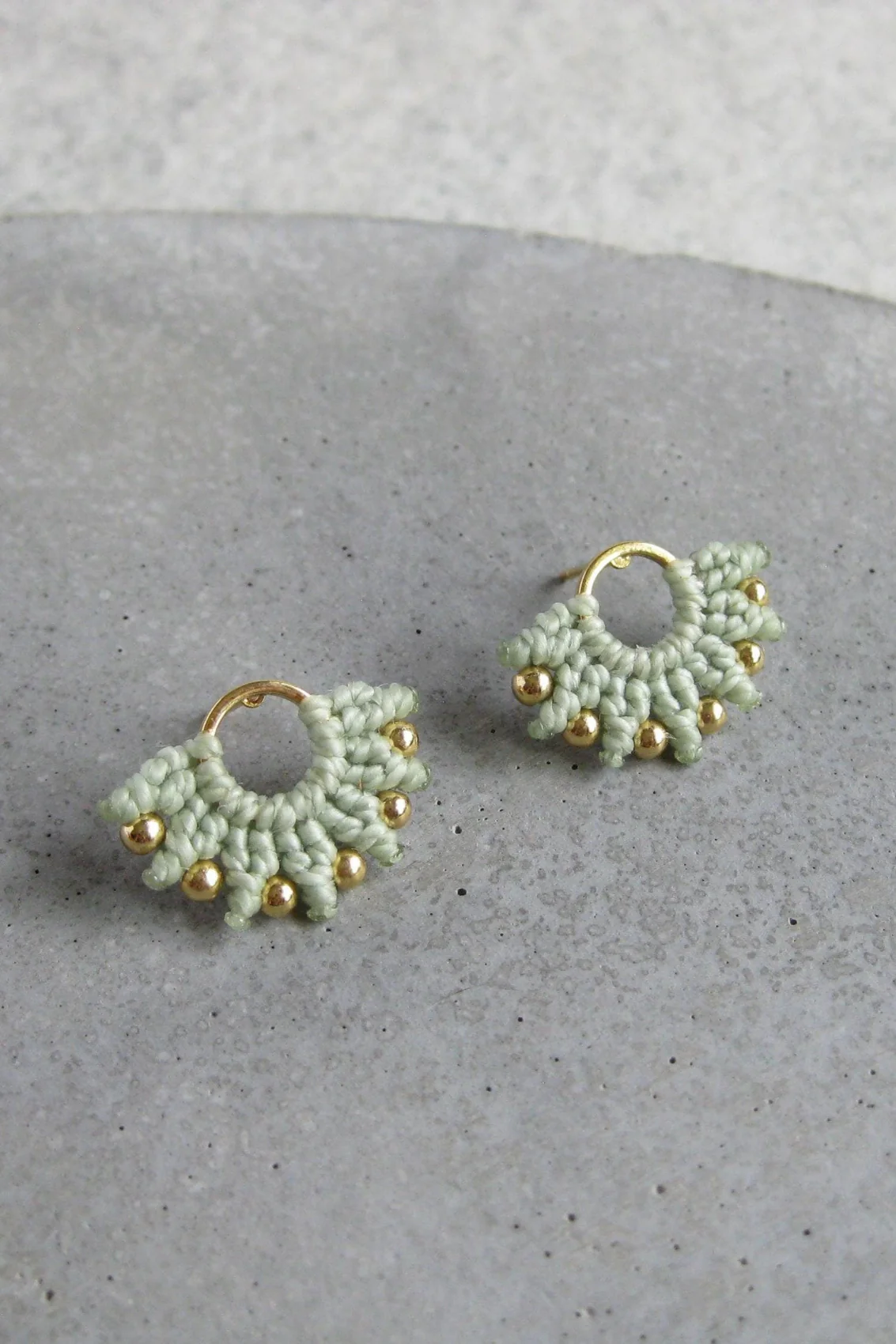 Alliant élégance et fantaisie, les boucles d’oreilles Vega, sont confectionnées un tout petit noeud à la fois par la technique du micro macramé.