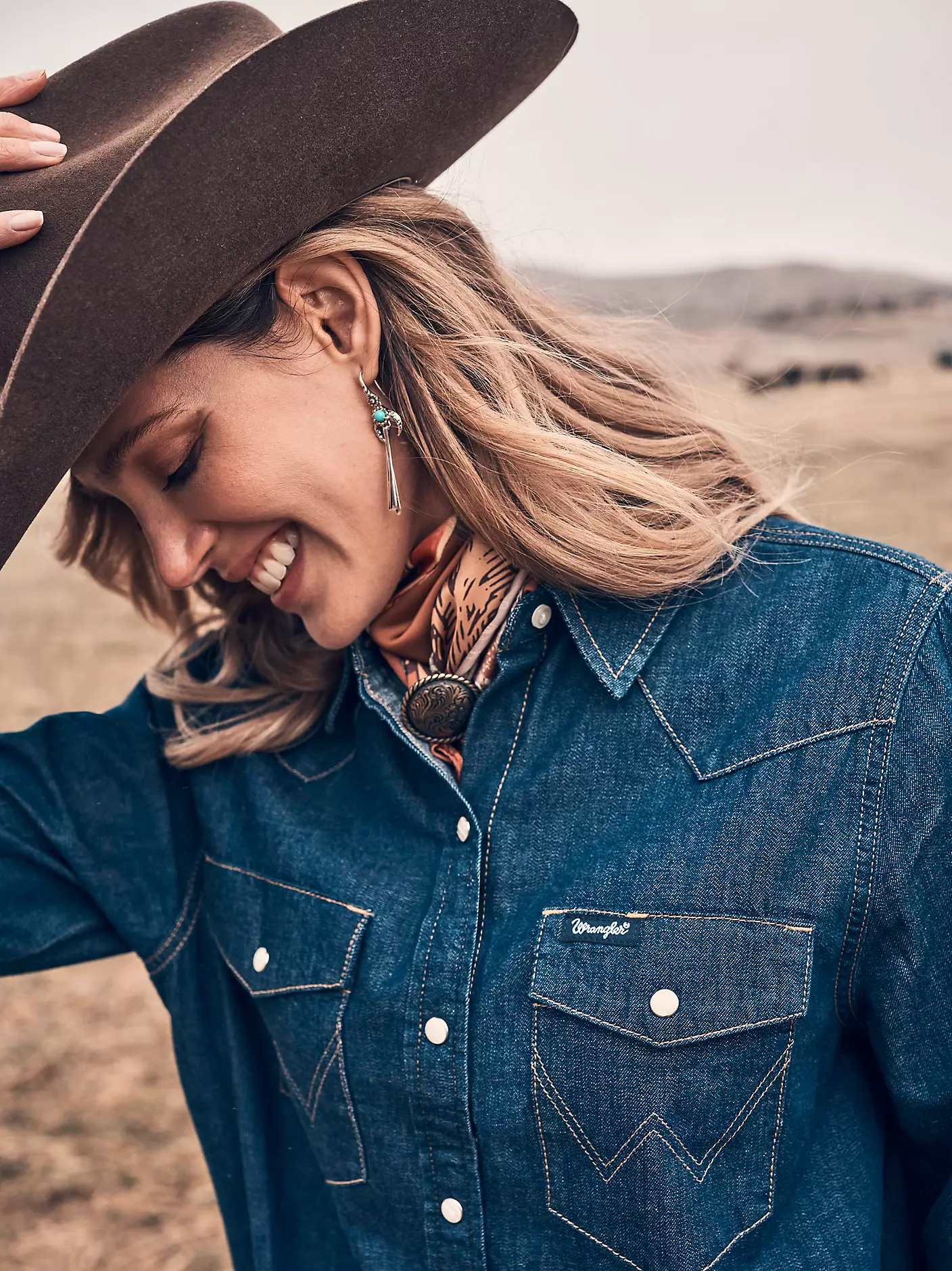 Avec notre robe-chemise western décontractée, retrouvez le style et le confort d’une chemise à boutons-pression, alliés à une silhouette parfaite pour toutes les occasions. Cette mini-robe à la coupe ample et aux manches longues vous assure un confort optimal tout au long de la journée, idéal pour la mi-saison. Confectionnée en denim 100 % coton, elle est dotée d’une fermeture à boutons-pression nacrés, d’empiècements simples et de deux poches poitrine ornées de la surpiqûre « W » emblématique. Portée seule ou superposée à votre tenue, cette pièce forte et authentique vous sublimera et vous mettra en valeur.