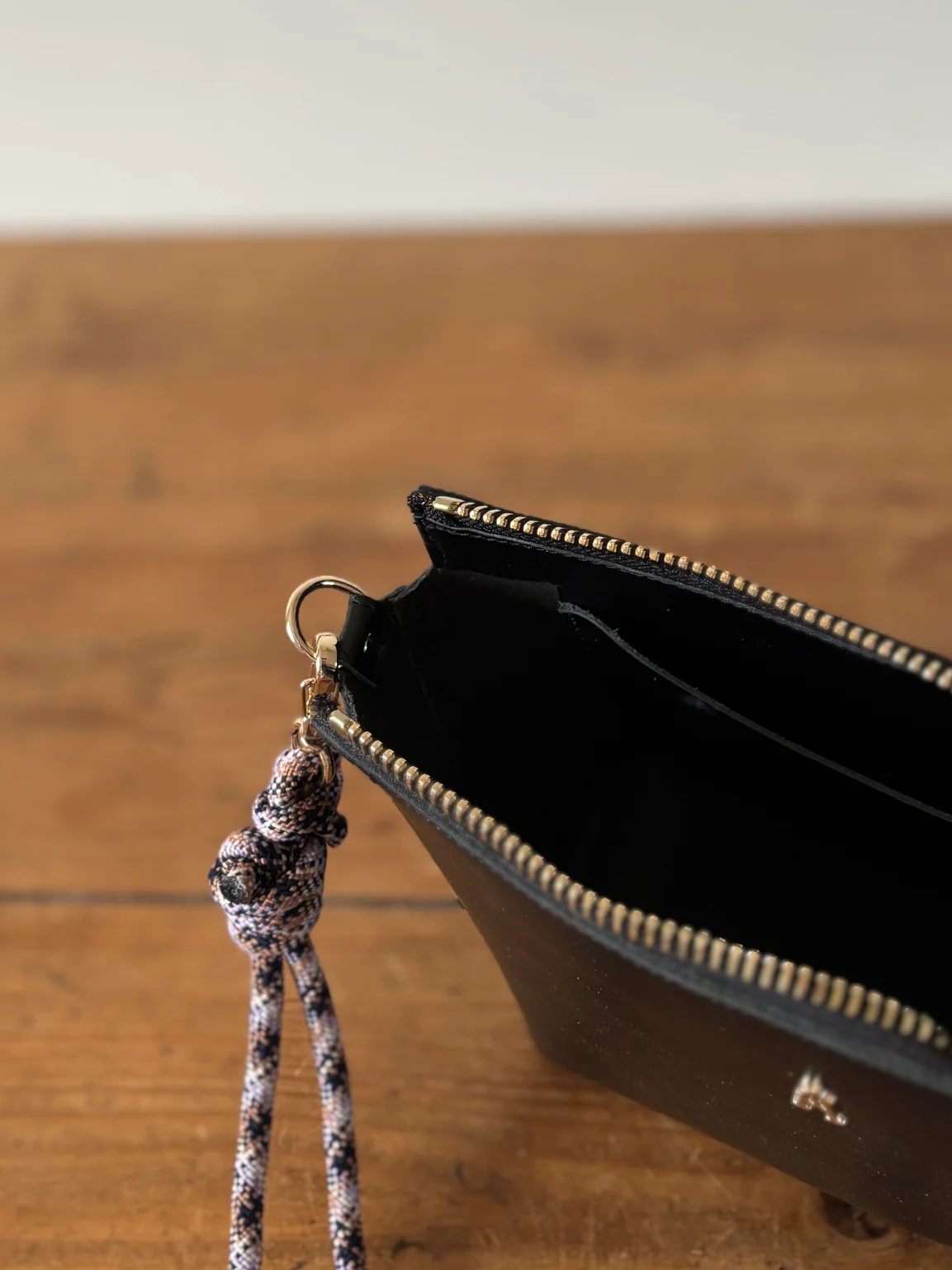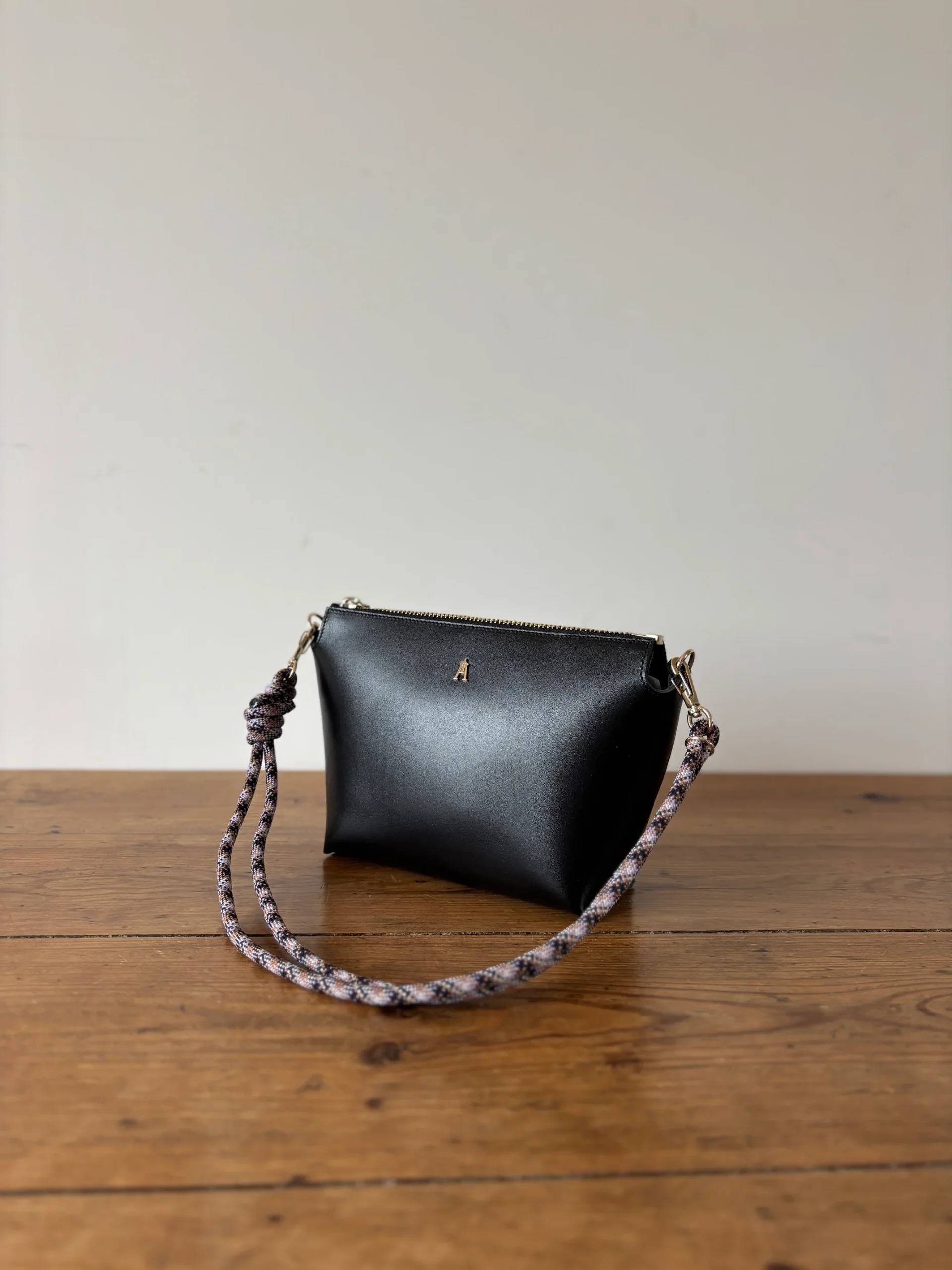 Anses / Bandoulières : Une bandoulière amovible et réglable en cuir. Une autre bandoulière « esprit corde d’escalade » amovible et réglable (65 cm au plus petit et 120 cm au plus grand)