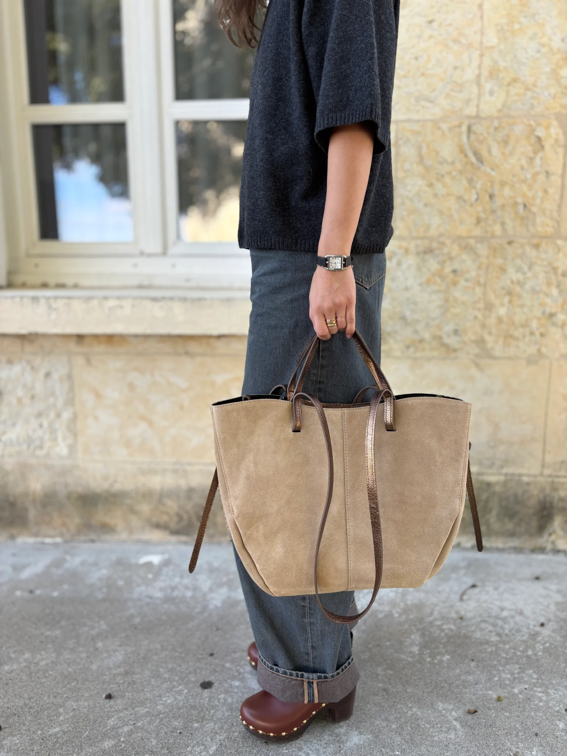 Anses / Bandoulières : Deux anses pour un porté main et deux anses plus longues pour un porté épaule.