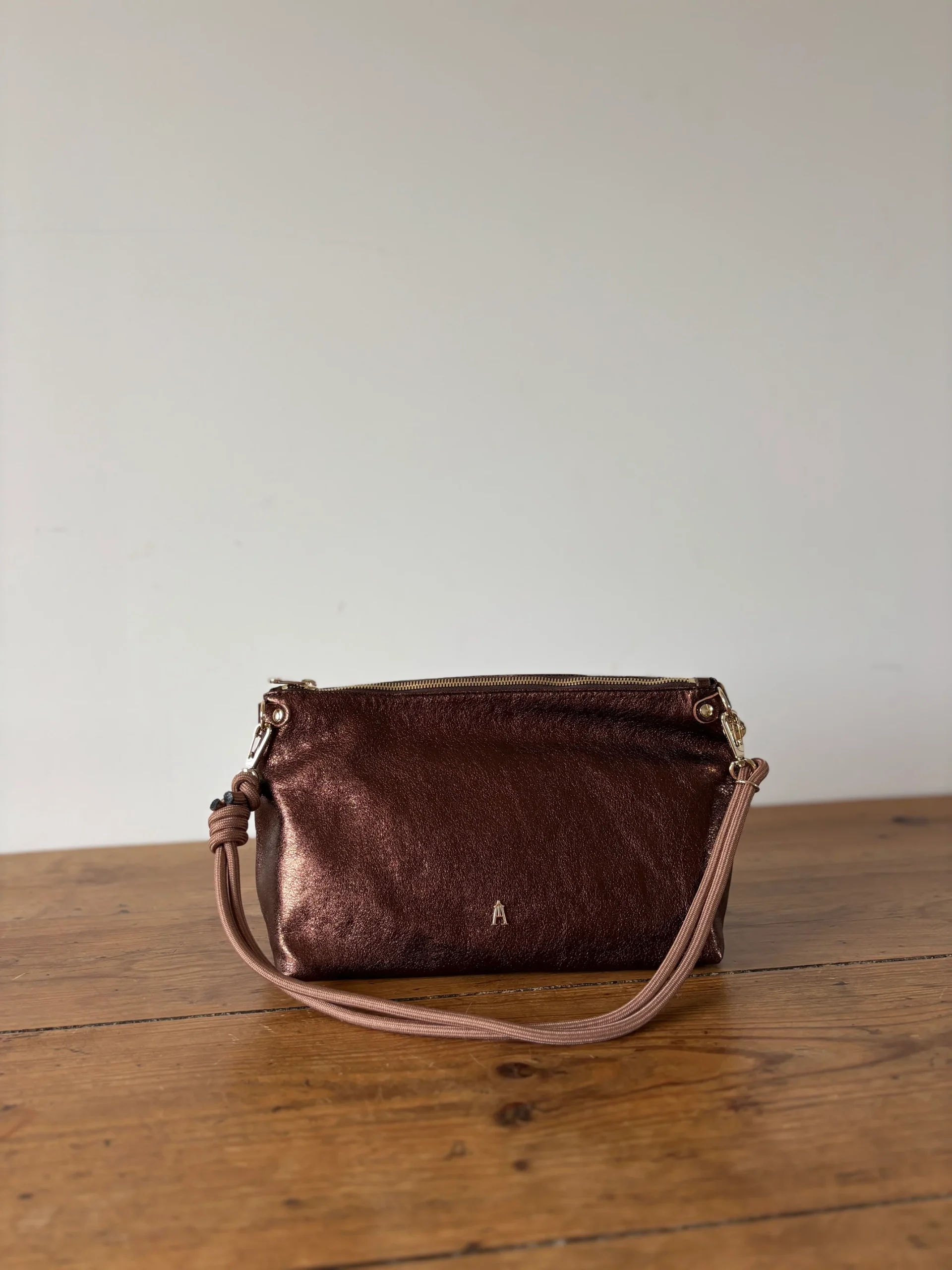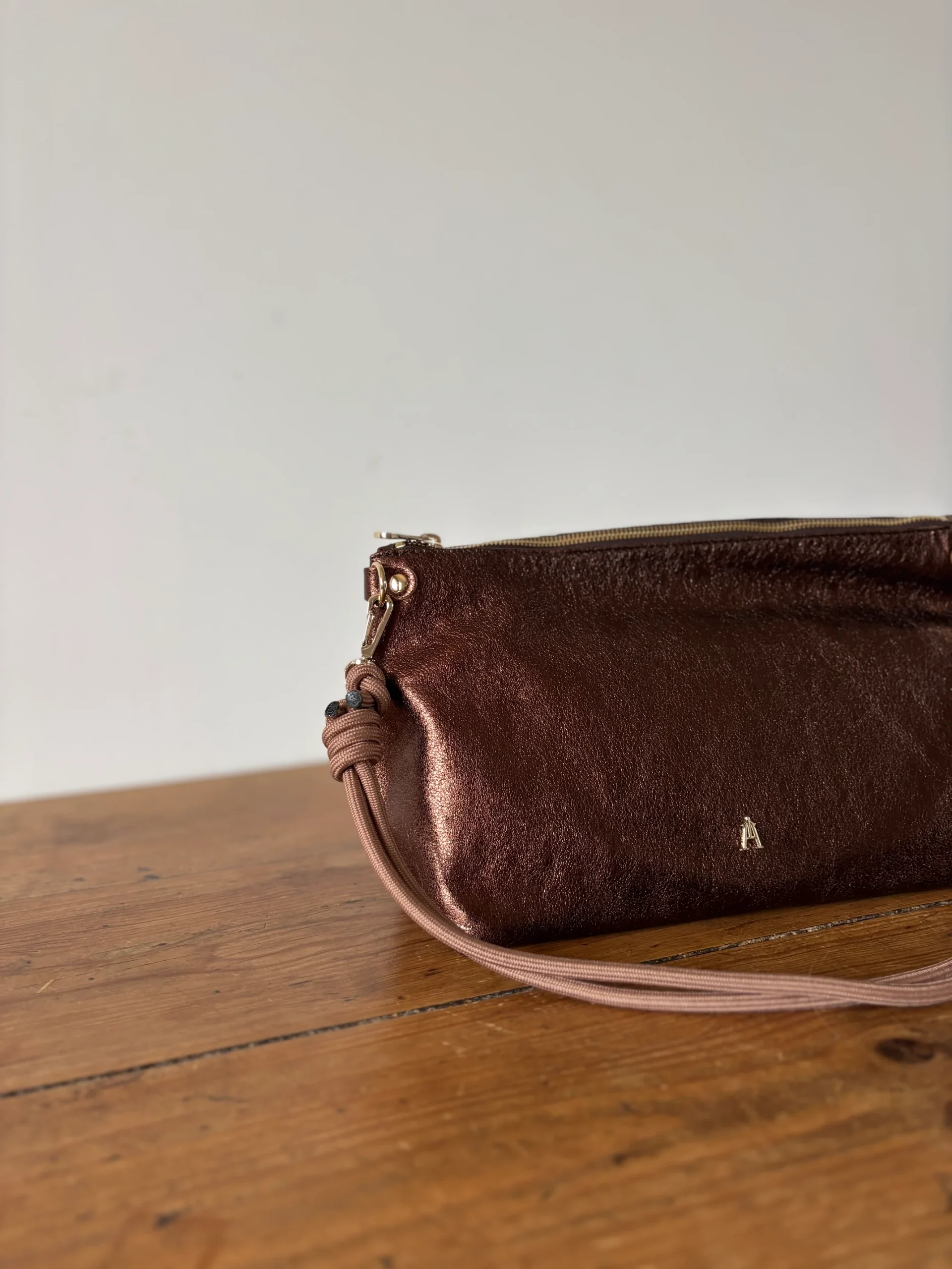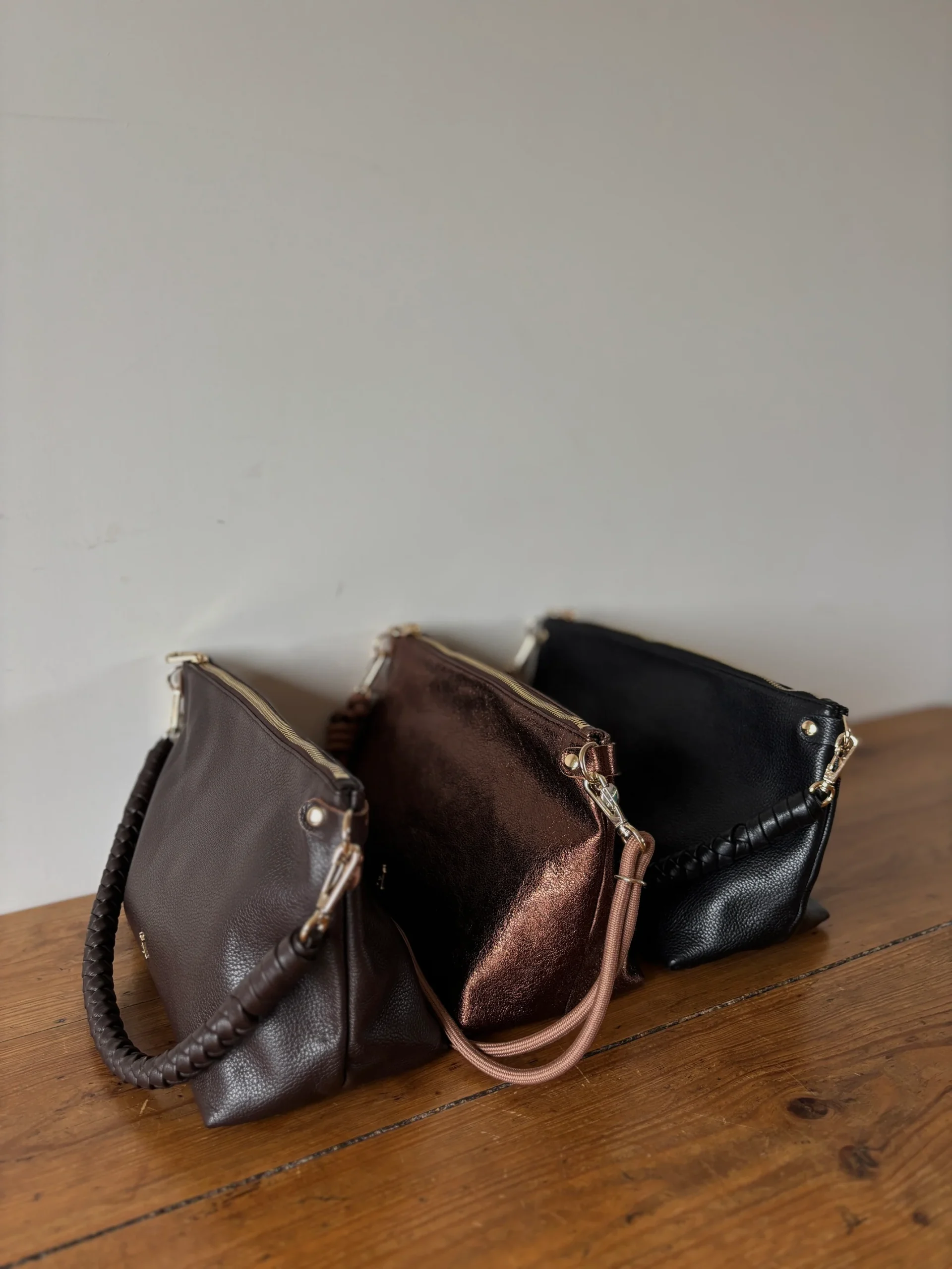 Anses / Bandoulières : Deux bandoulières amovibles (une sangle réglable de 65 à 120 cm) & (une chaine or clair non réglable).