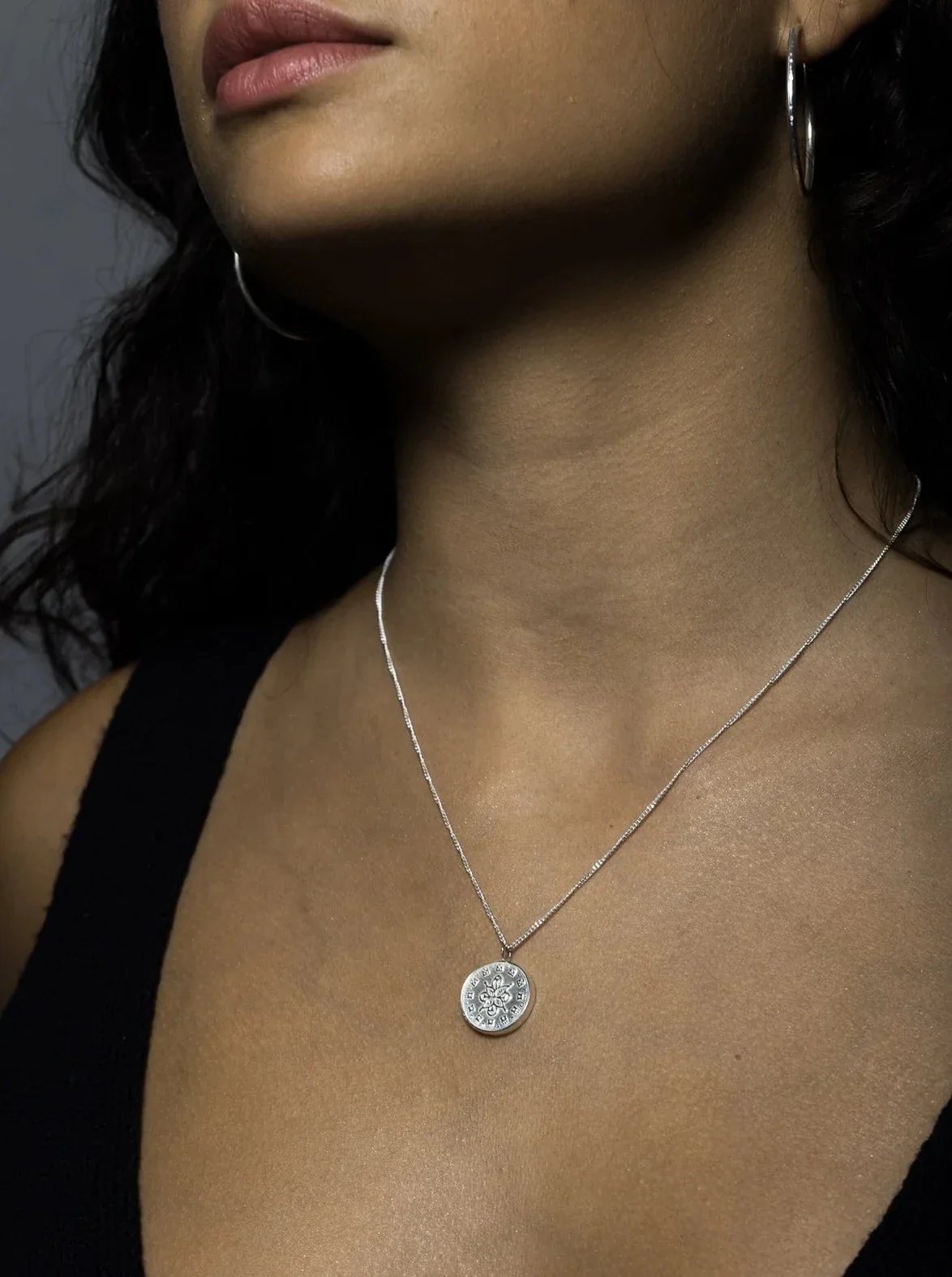 Création locale, fait à la main avec amour et talent à Montréal. Le pendentif Portogallo est une partie moulée d’une pièce de monnaie portugaise. Composition : argent sterling (925) Dimensions : longueur : 18 po. ; pendentif : 1,7 X 1,7 cm