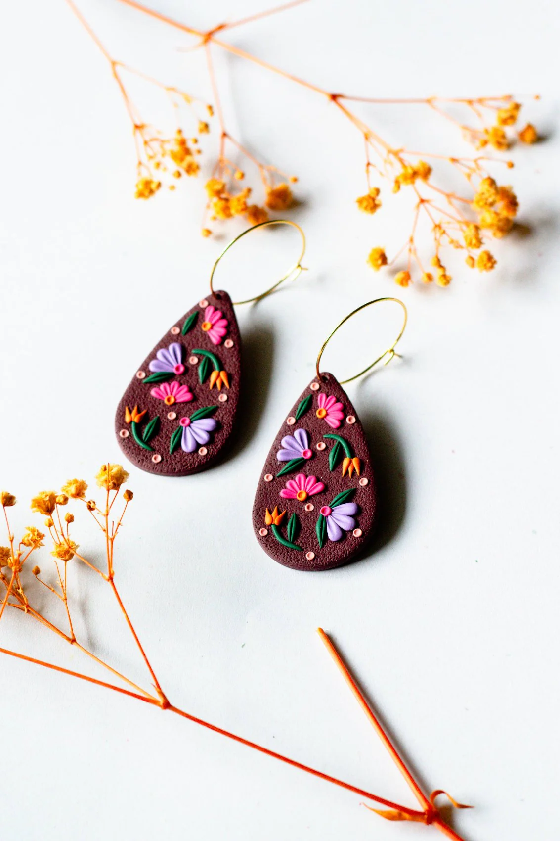 Ces créoles florales en pâte polymère sont très légères et sont parfaites pour tous les amateurs de botanique.