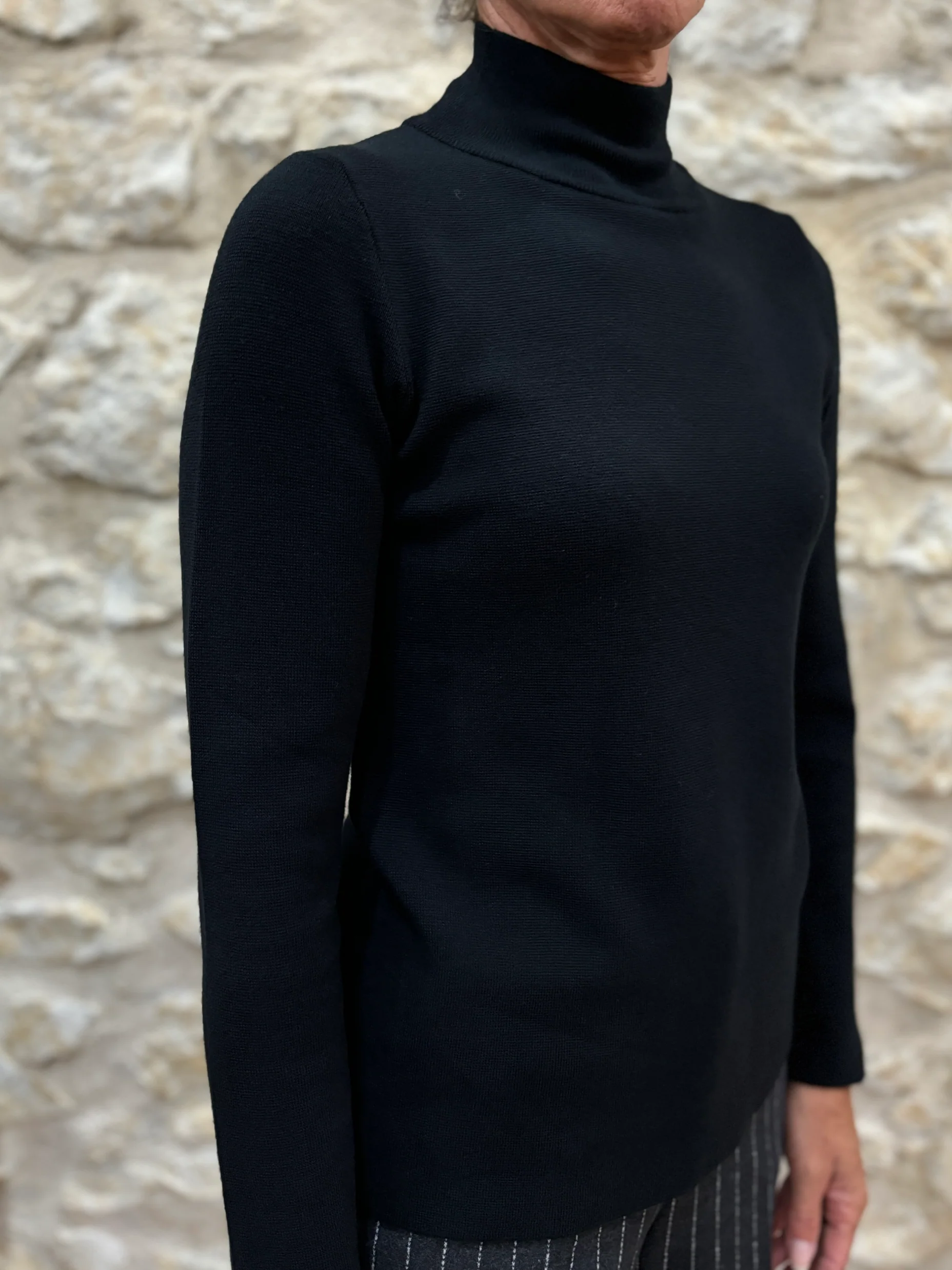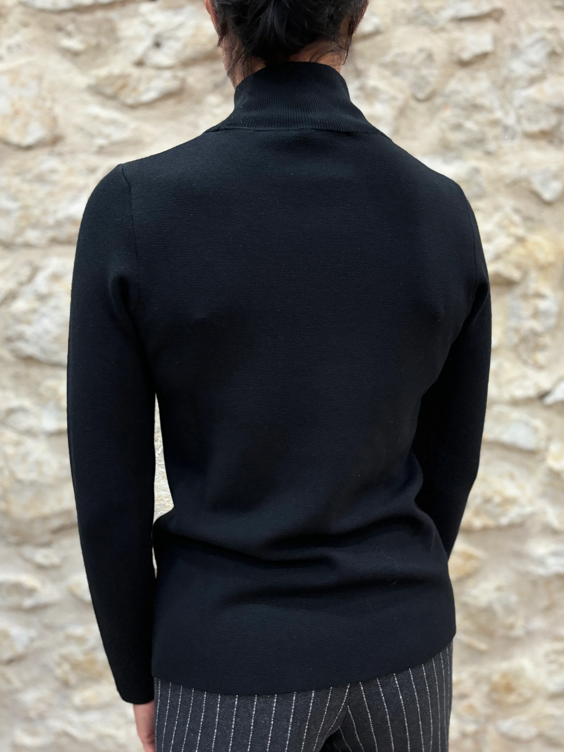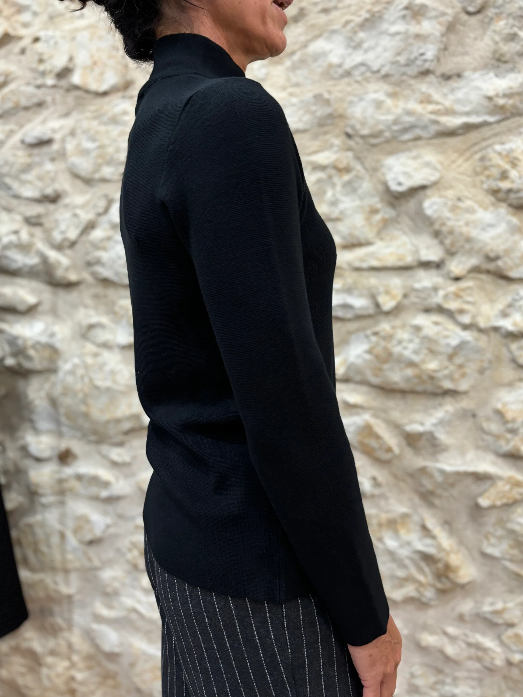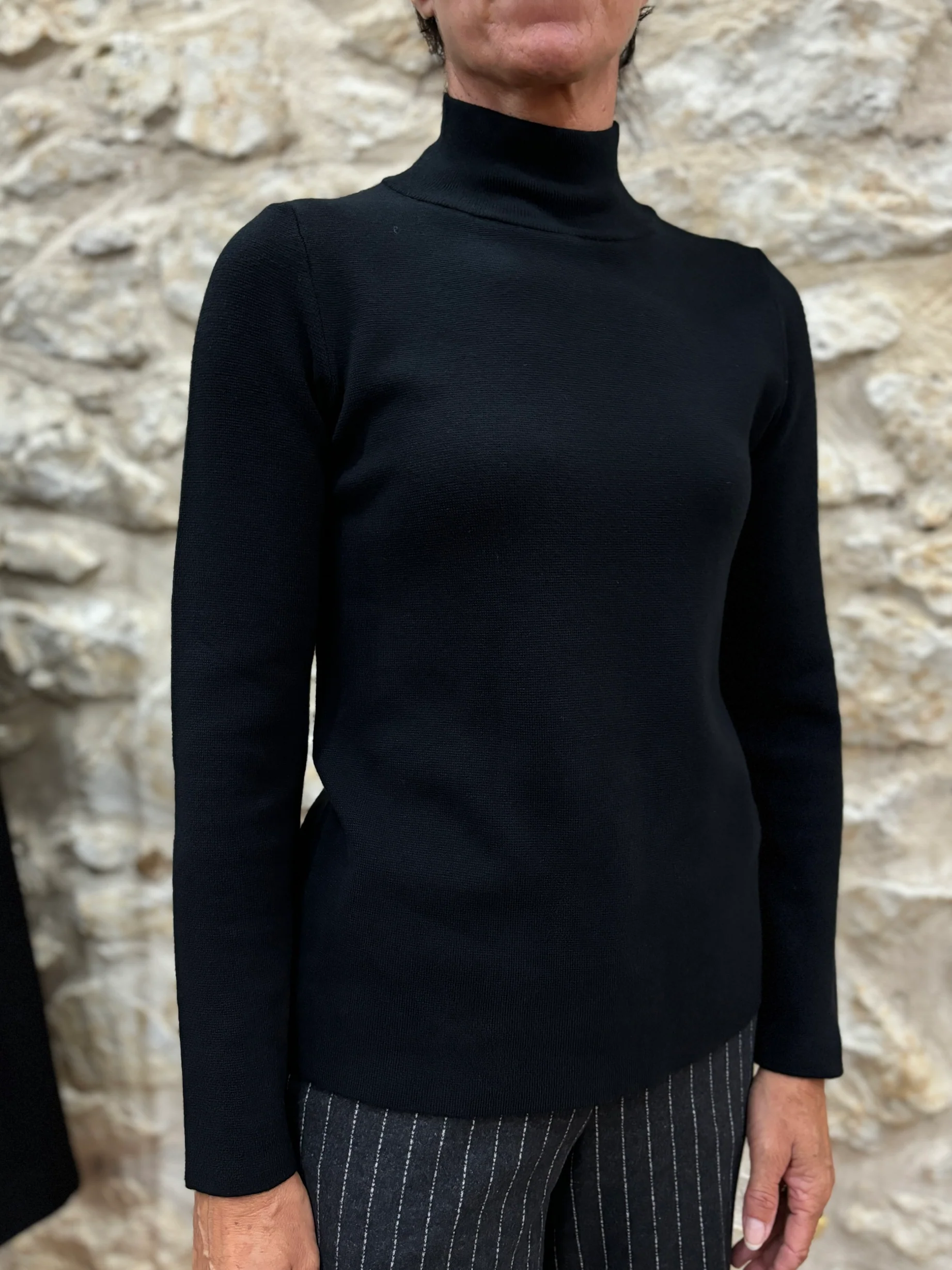 Matières : Viscose & coton Coupe : Coupe droiteForme du col : Col montantLongueur des manches : Manches longuesCouleurs / Motifs : noir Notre modèle porte une taille 34 et mesure 165 cm. Marque : ANNA SERAVALLI Conseils d’entretien : Lavage en machine à 30°.Informations supplémentaires : Prenez votre taille habituelle.