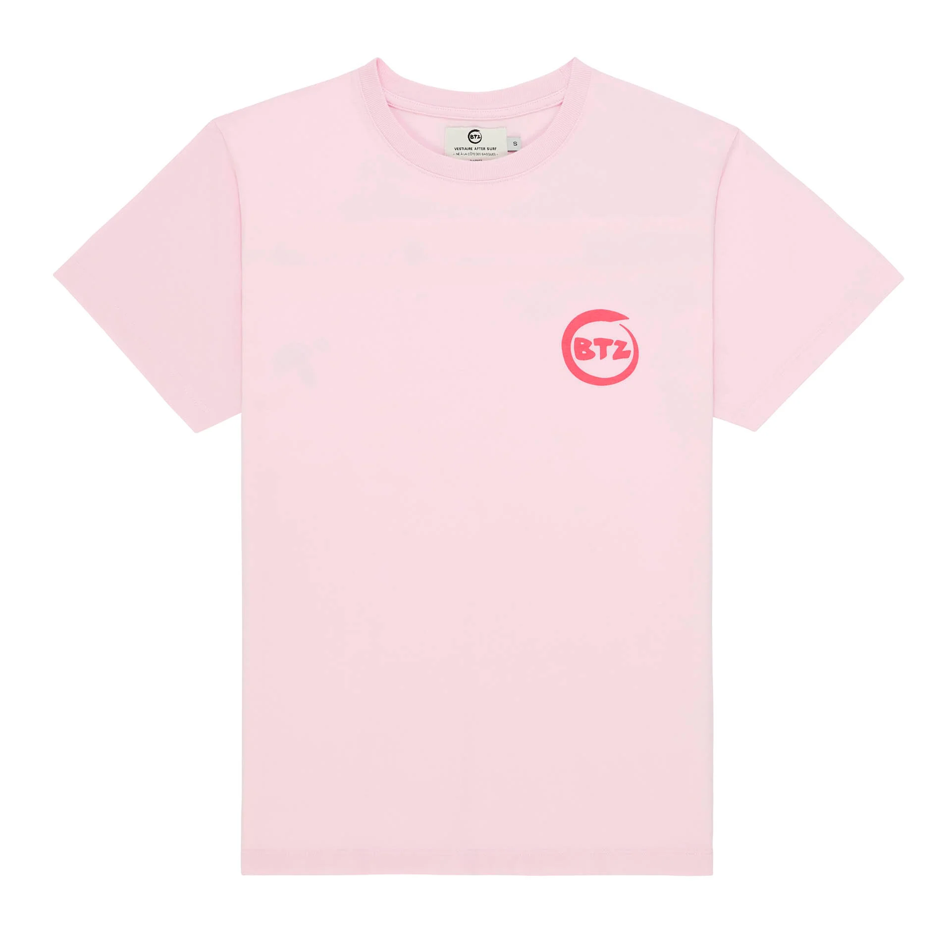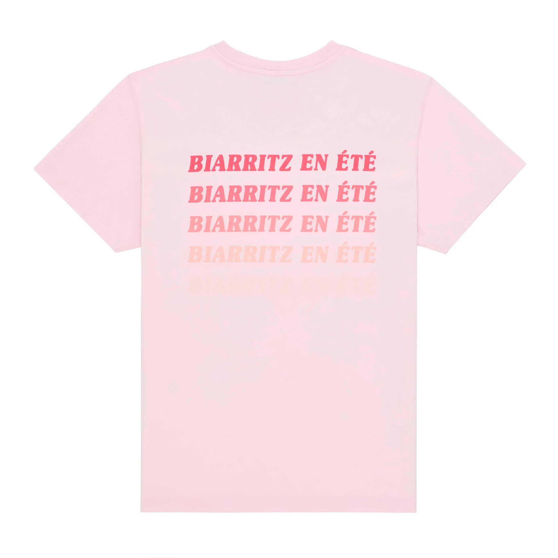 T-shirt coupe légèrement ample avec un print dos ‘Biarritz en été’ en camaïeu de rose, sur le devant le logo BTZ .