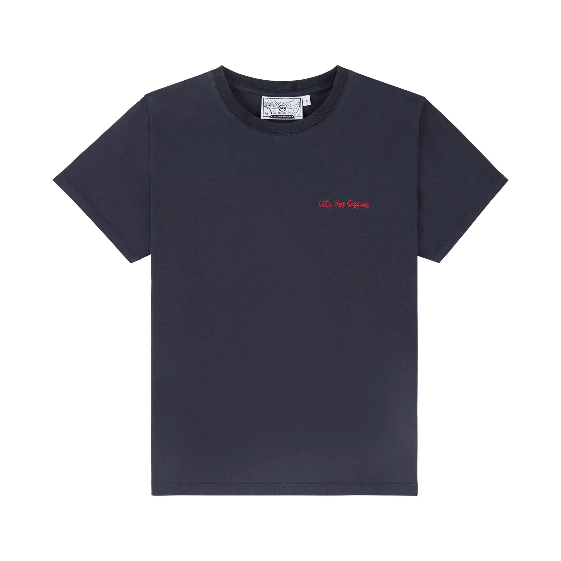 Le t-shirt brodé Côte des Basques femme marine en coton biologique, coupe droite classique, manches courtes.