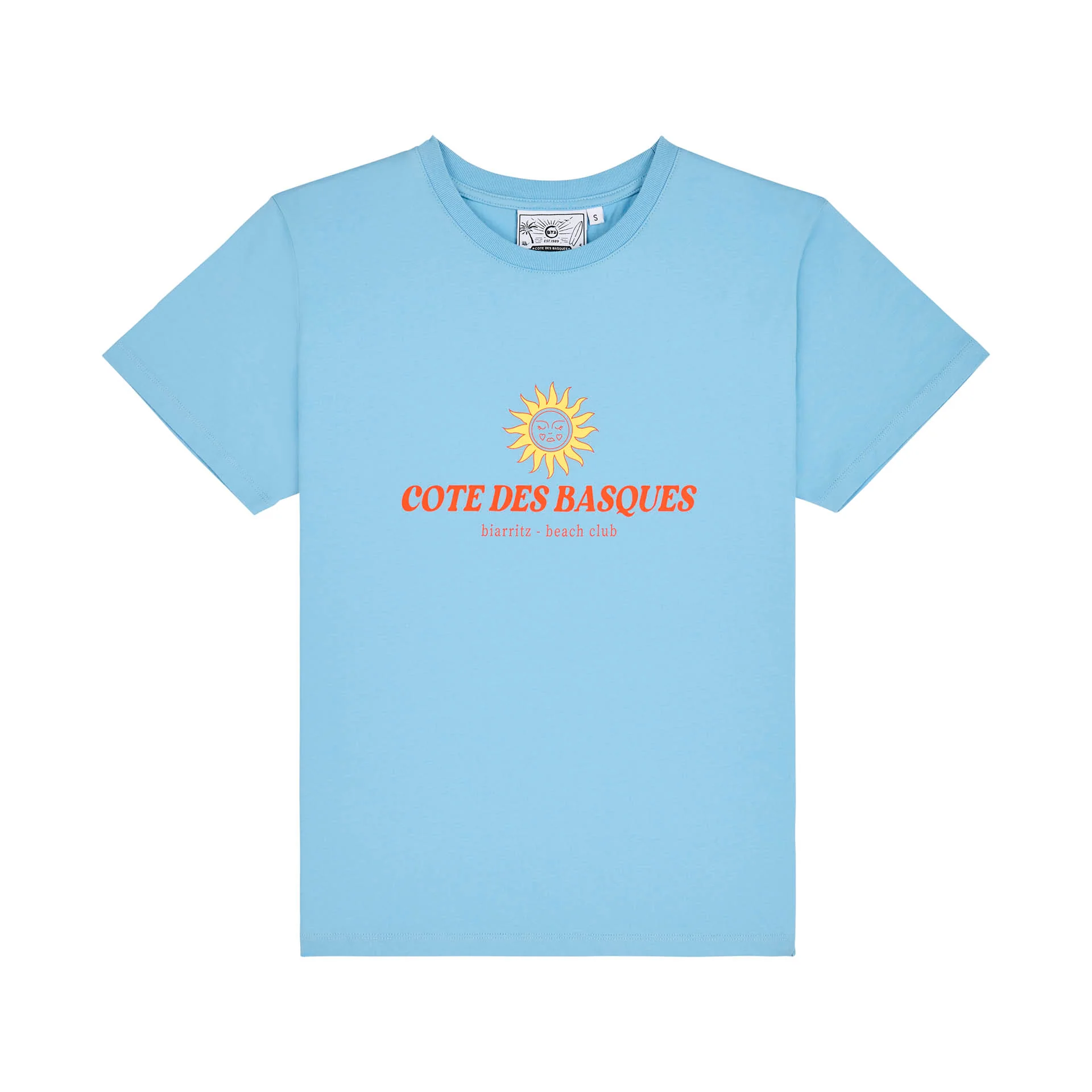 T-shirt femme Côte des Basques Sun bleu ciel en coton biologique, coupe regular, manches courtes.