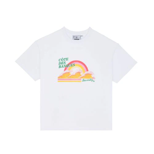 Nouveauté du vestiaire SS25 femme, le t-shirt Côte des Basques Wave, mélange les codes du vintage surf et de l’art japonais. Un design exlusif SS25 qui rend hommage à l’emblématique plage de la Côte des Basques berceau de BTZ et du surf basque.