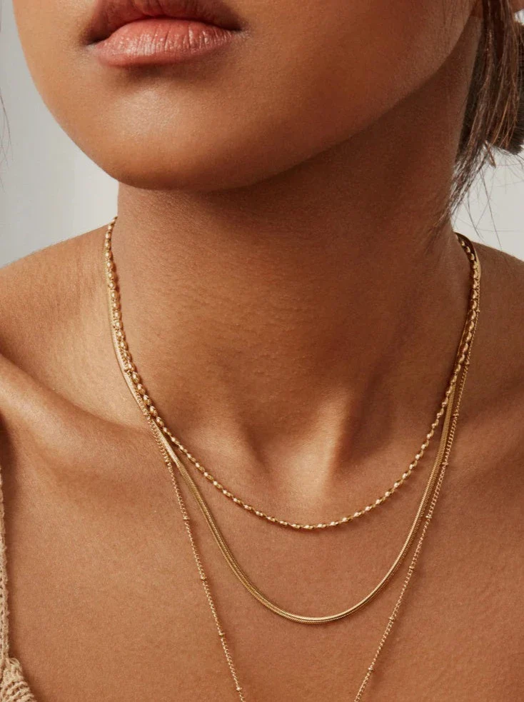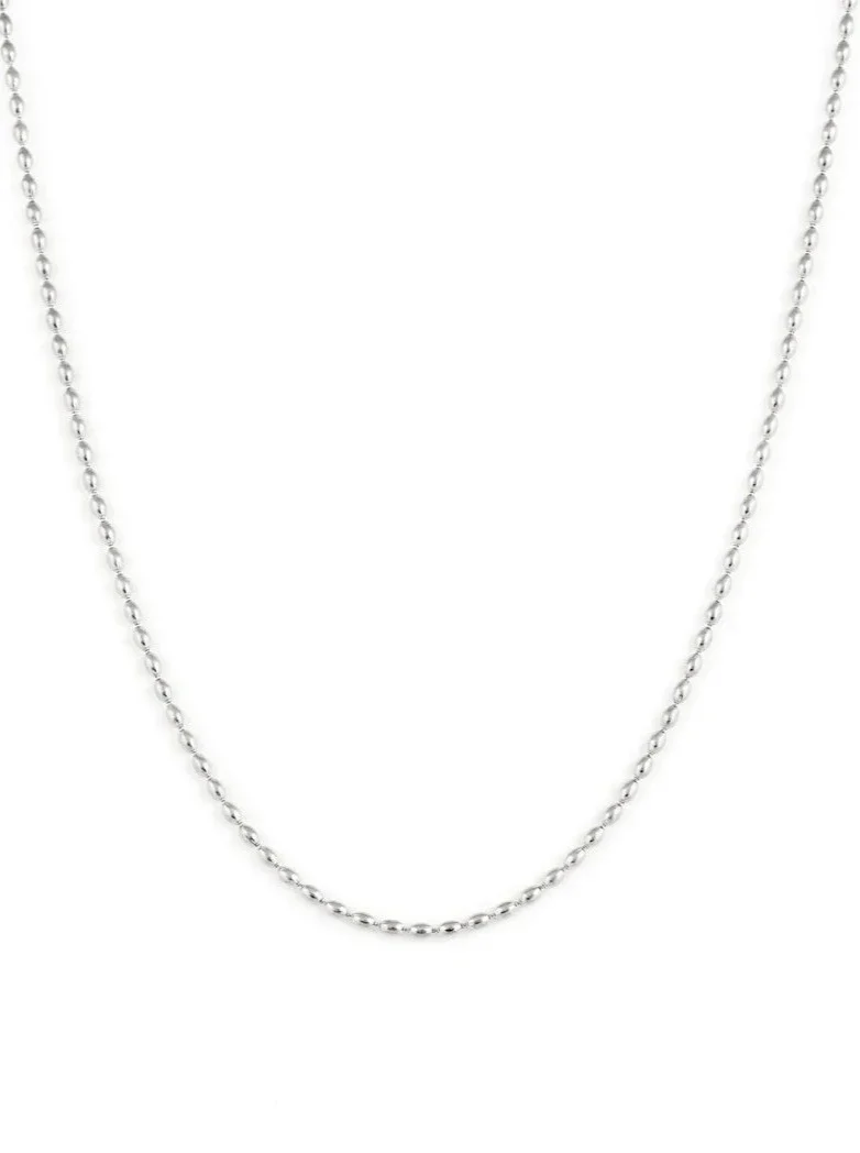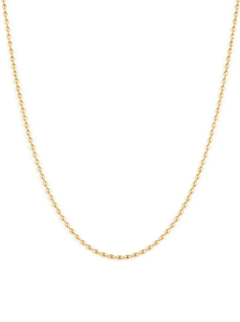 Collier fait de délicates billes en forme ovale qui se porte bien seul ou qui s’agence facilement avec vous autres colliers préférés! Sa longueur légèrement courte en fait la pièce parfaite pour porter au quotidien.