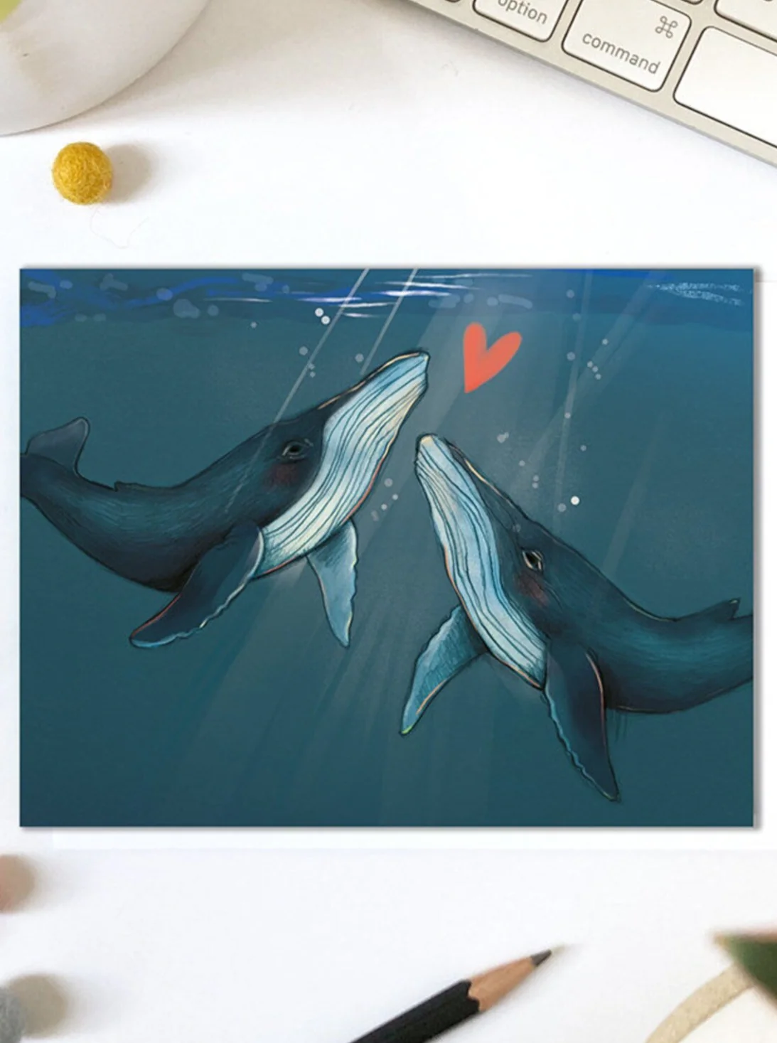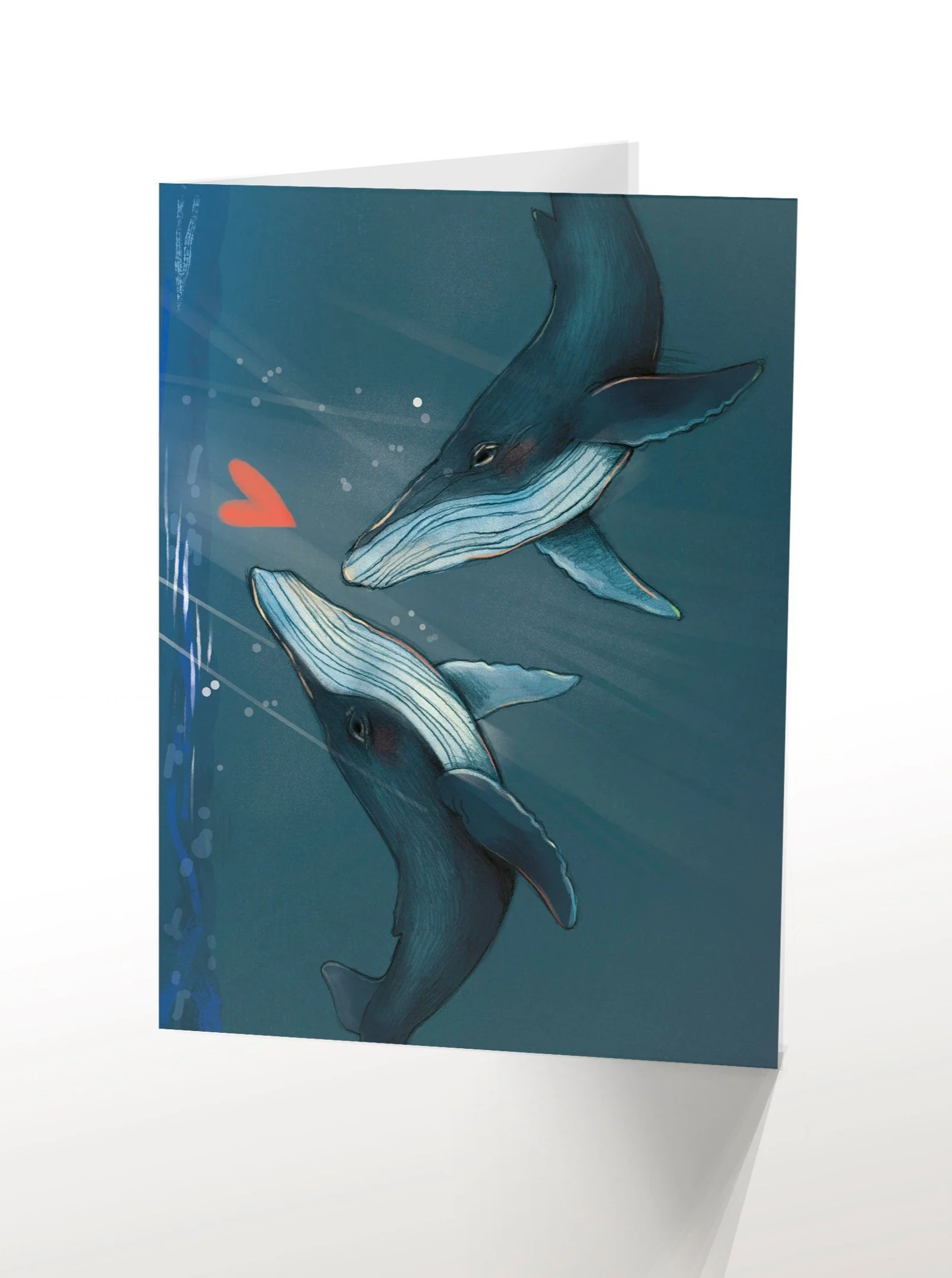 Carte de souhait, sans texte, représentant deux baleine !