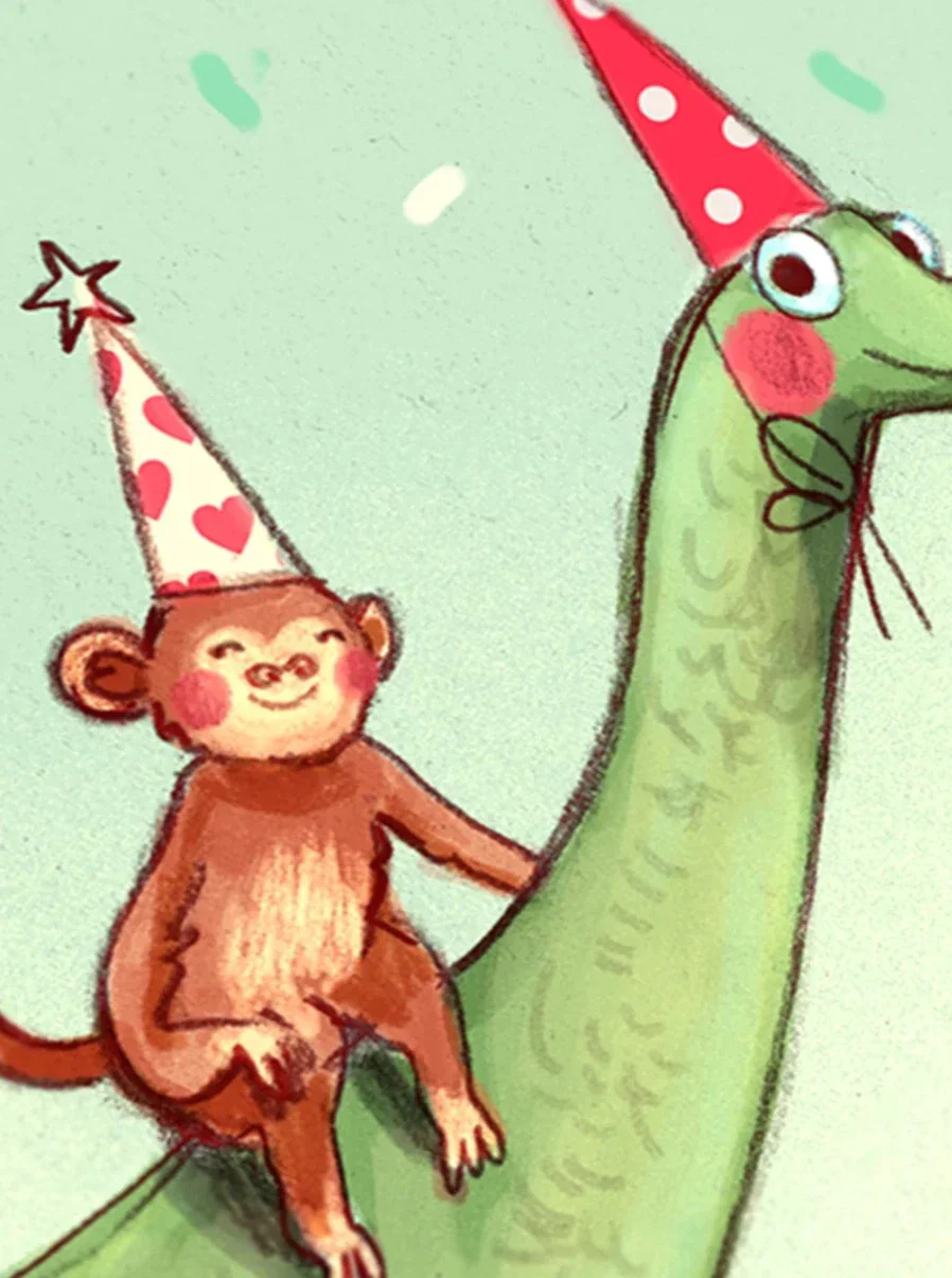 Carte de souhait, sans texte, représentant un trio festif!