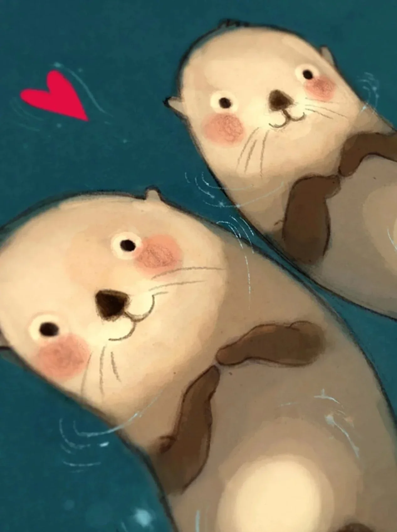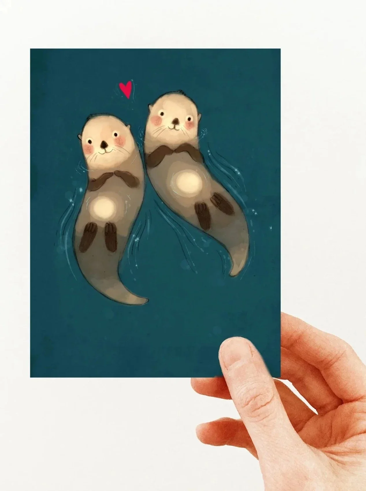 Carte de souhait, sans texte, représentant des loutres amoureuses!