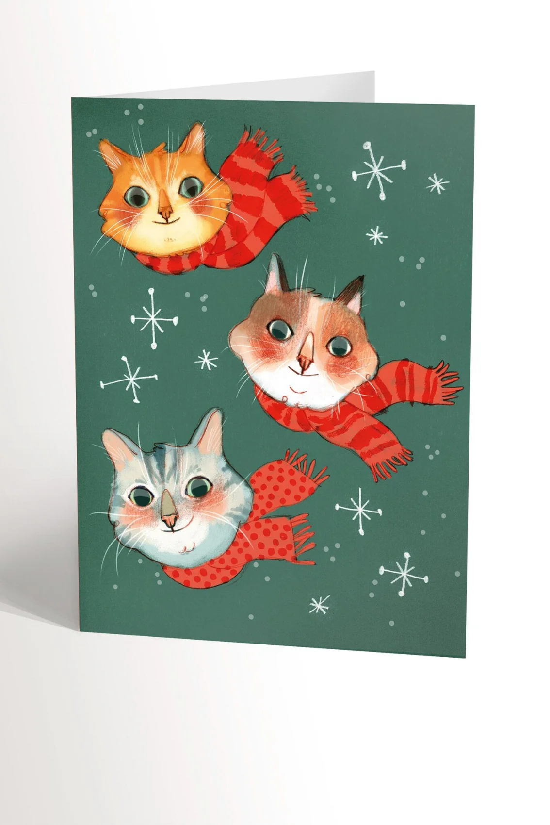 Création locale, faite avec amour et talent à Montréal. Carte de souhait, sans texte, représentant 3 chat ! Carte imprimée au Québec et fournie avec son enveloppe blanche. Dimensions: 4,25’’ x 5,5’’.