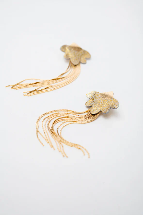Avec sa forme festonnée et ses serpentins en laiton délicatement allongés, la boucle d’oreille Praline allie légèreté et fluidité. Conçue pour encadrer le visage avec grâce, elle apporte une touche de sophistication subtile tout en sublimant les traits. Son design aérien capte la lumière et accompagne chaque mouvement avec élégance.