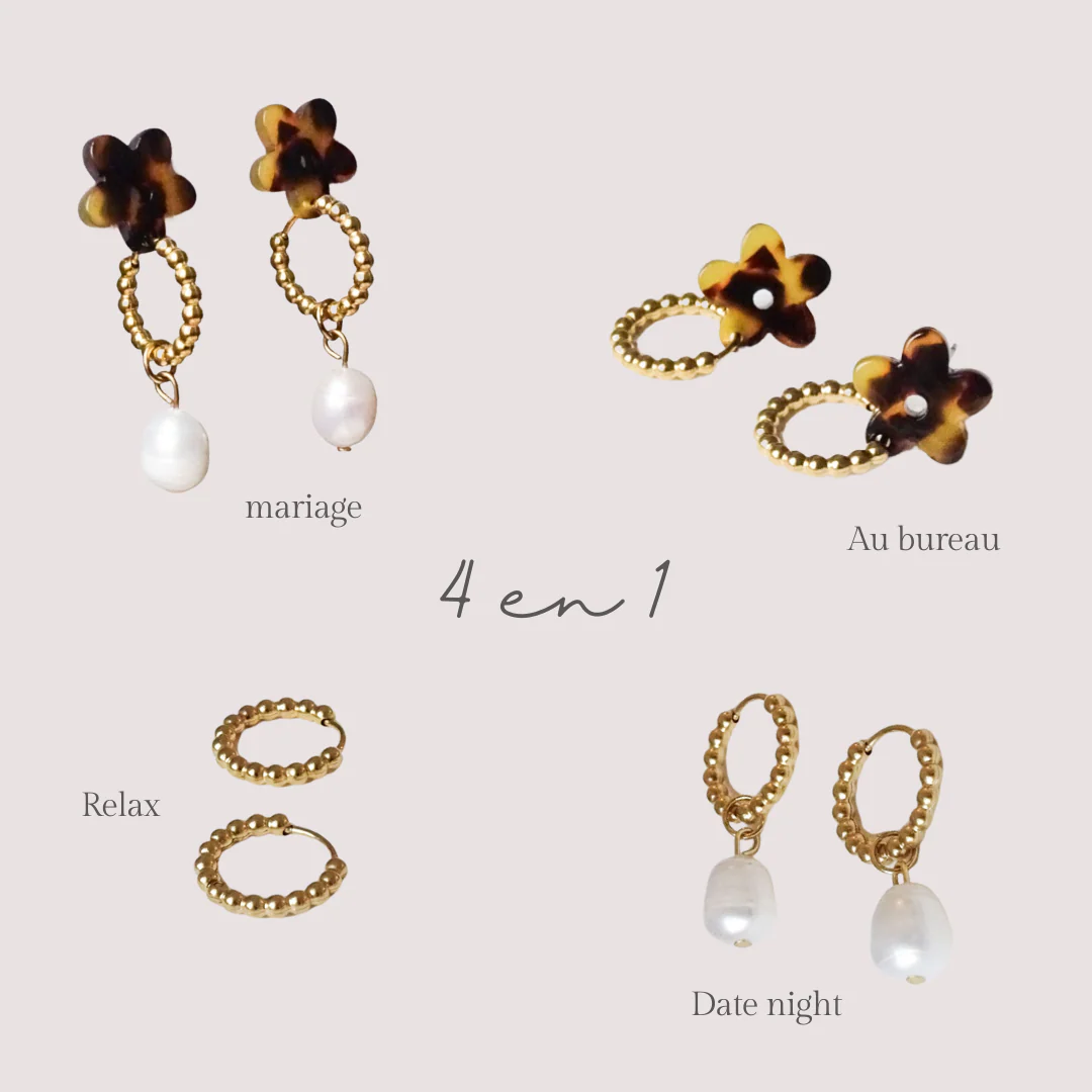Les boucles d’oreilles Flora sont si uniques et polyvalentes. Amusez-vous à jouer avec les 4 façons différentes de les porter !