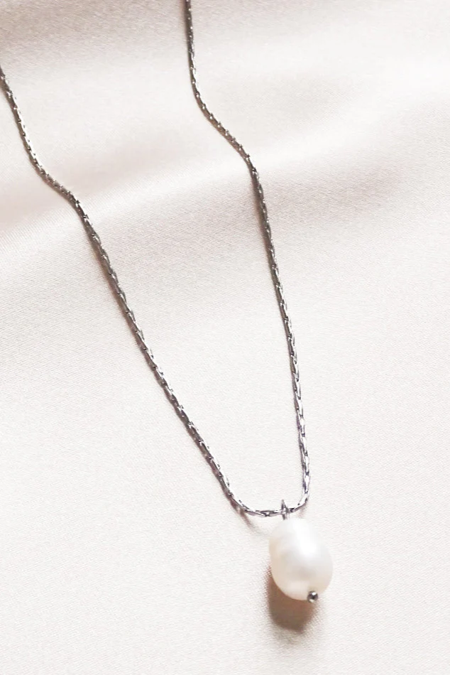 Collier magnifique et simple avec une grande perle d’eau douce véritable.