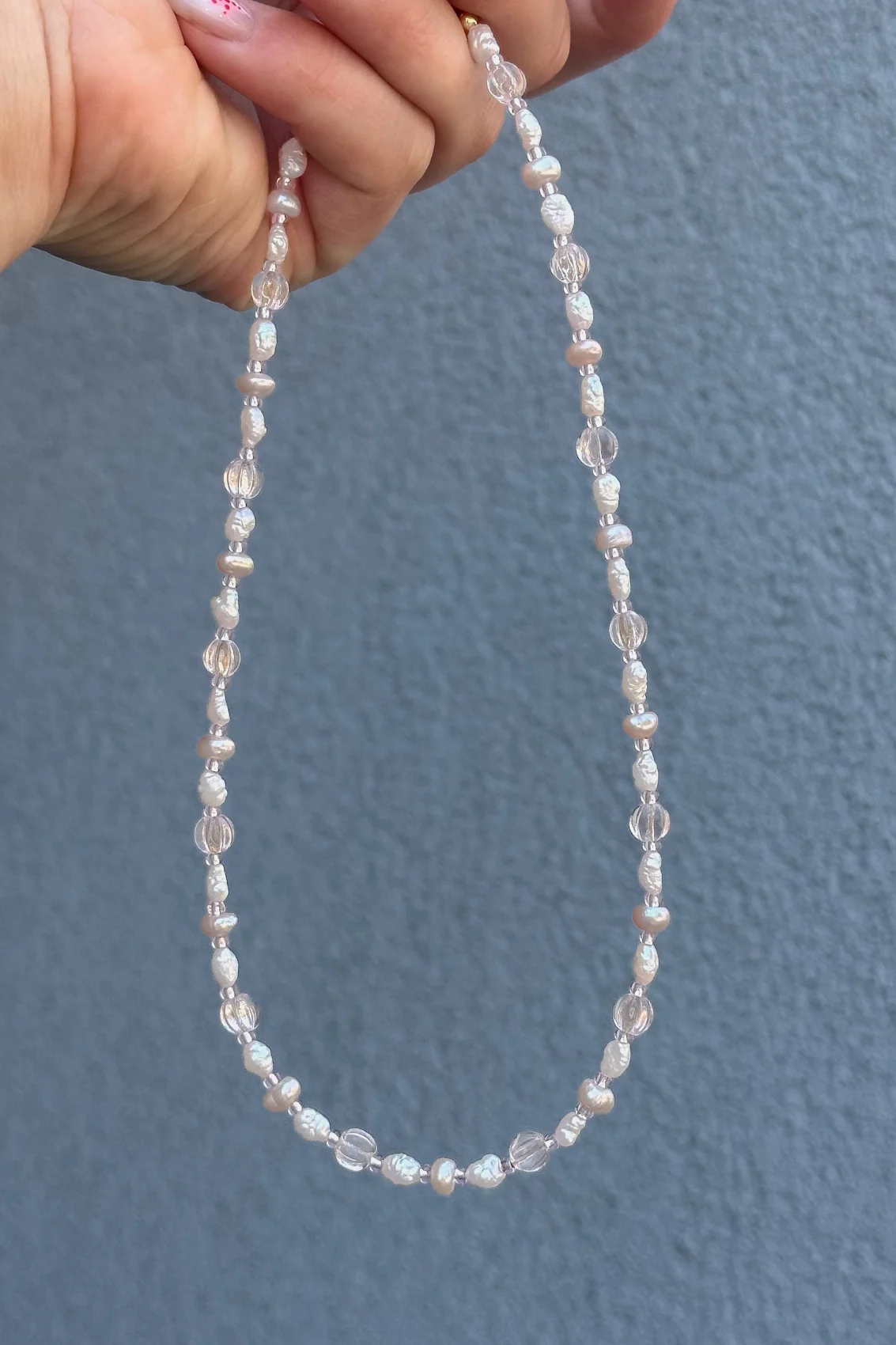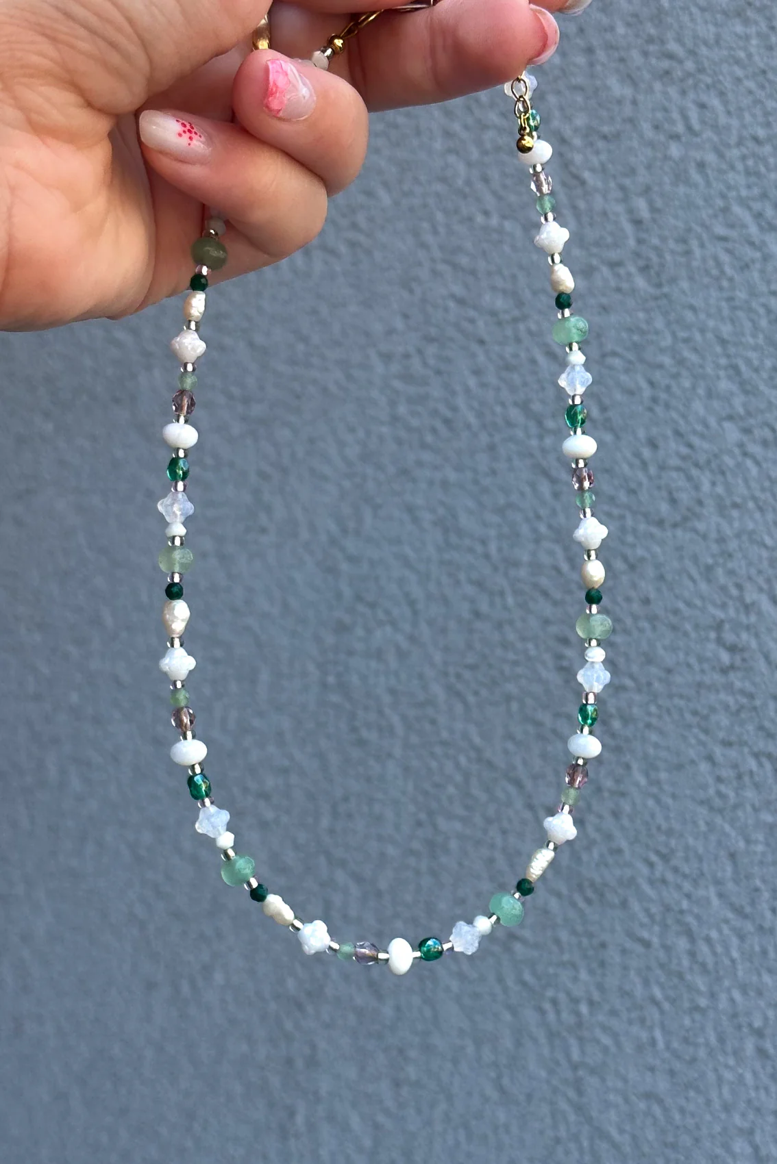 Perles d’eau douce naturelles et bille en verre vintage tchèque.