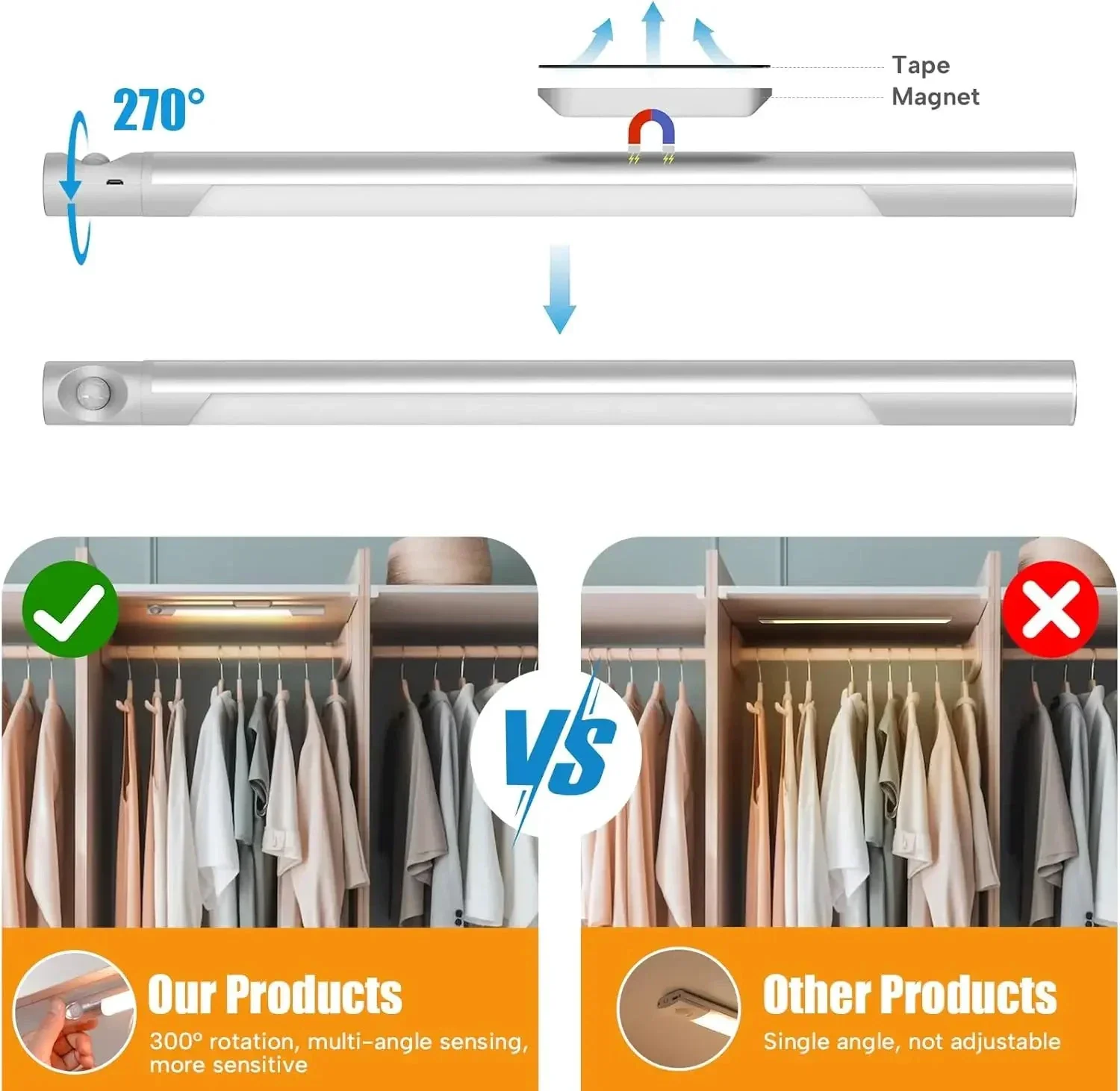 Veilleuse LED à capteur de mouvement magnétique Xiaomi – 40 cm, 3000 mAh