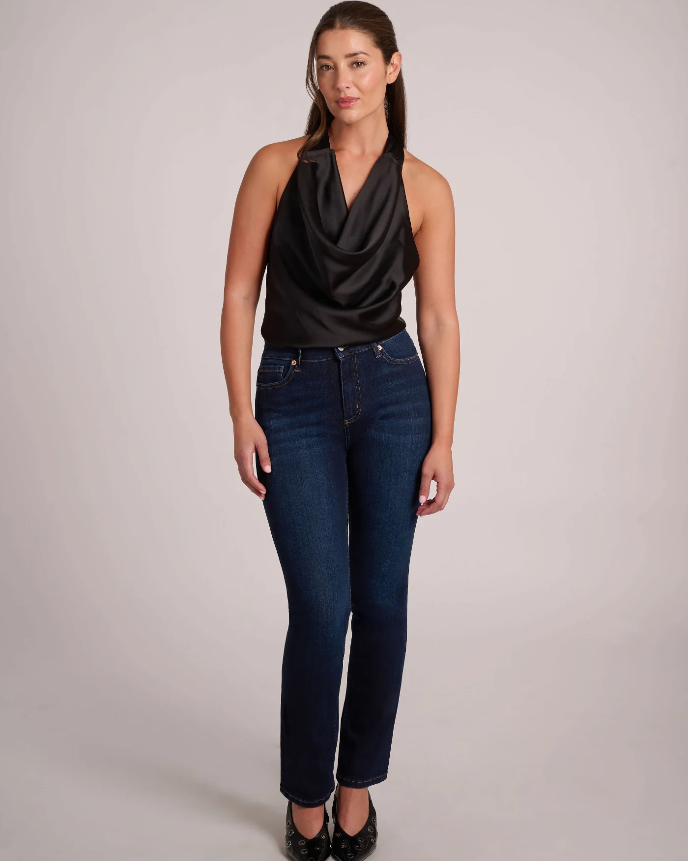 Élevez votre garde-robe avec ce jeans taille haute. Avec une longueur d’entrejambe de 30 pouces, une fermeture à bouton en nickel brossé et des coutures ton sur ton, ils offre un parfait mélange de style épuré et de polyvalence.